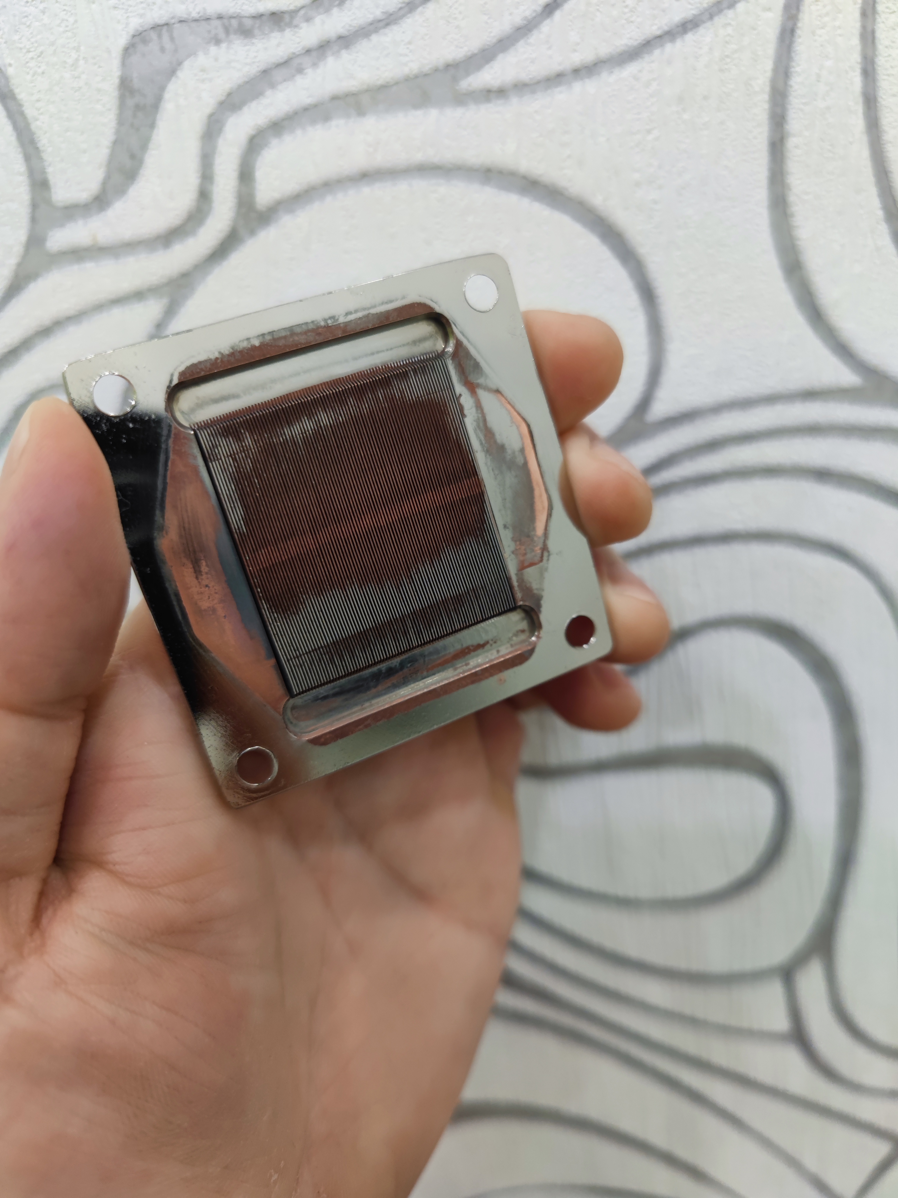 Готовлю свой XPX к работе с 13700к. После недолгой работы в составе Hurricane copper 360 (в комплекте идет черный ХРХ, а жаль ), да на родной жиже, никель внутри пооблезал, медь поокислялась. Вообще, СКС жижа от альфы - полный шлак с т.з. подавления коррозии, а никелировка - говно, слезает от потока даже. + Проблема данного водоблока внутри - наличие распределительной пластины из нержи, которая контактно в момент окисляет любой металл. В общем, после месяцев (наверное, 3, не помню точно. Залез по причине вымывания пластификатора из родных шлангов родной жижей ) работы стало вот так: