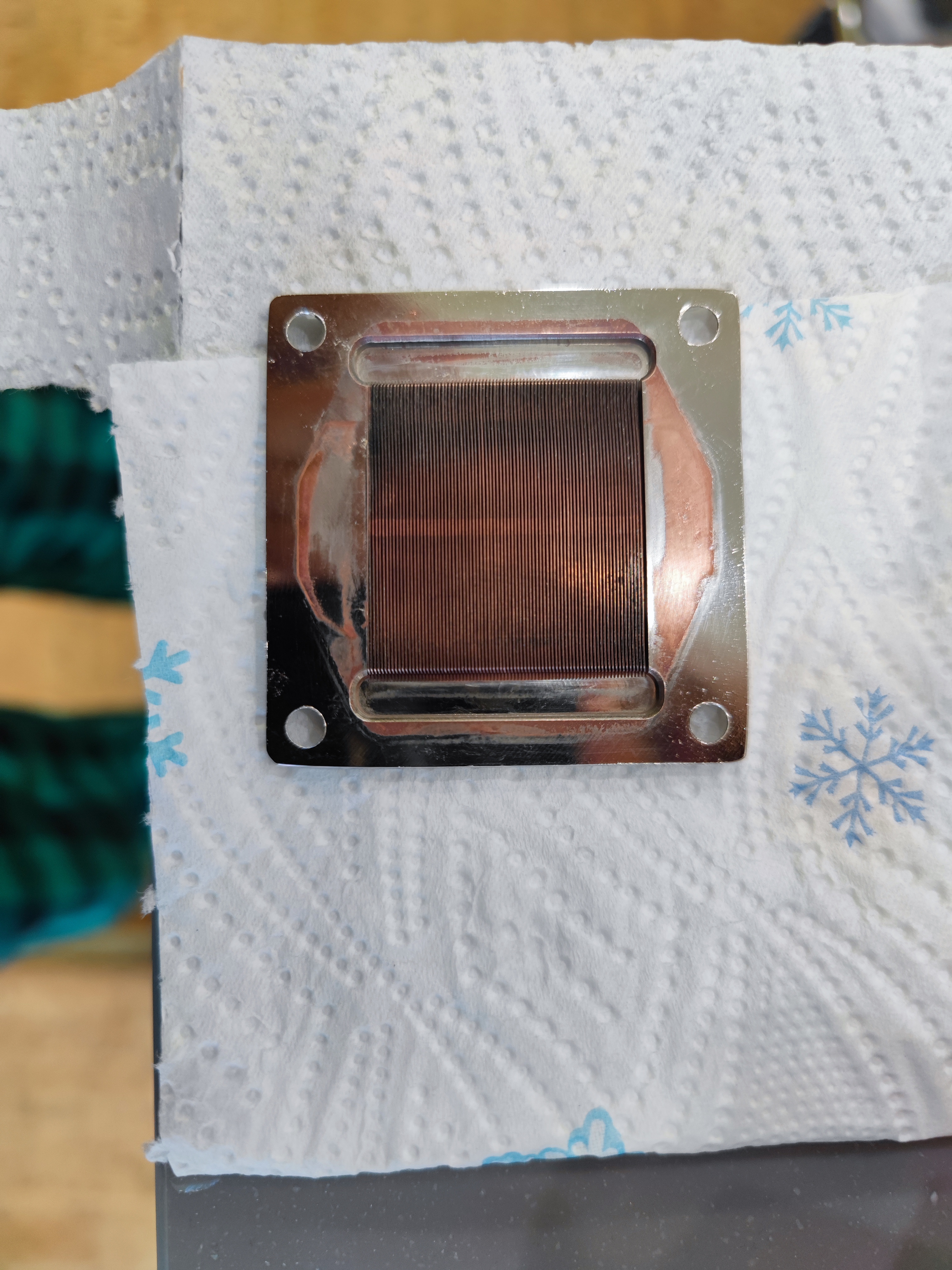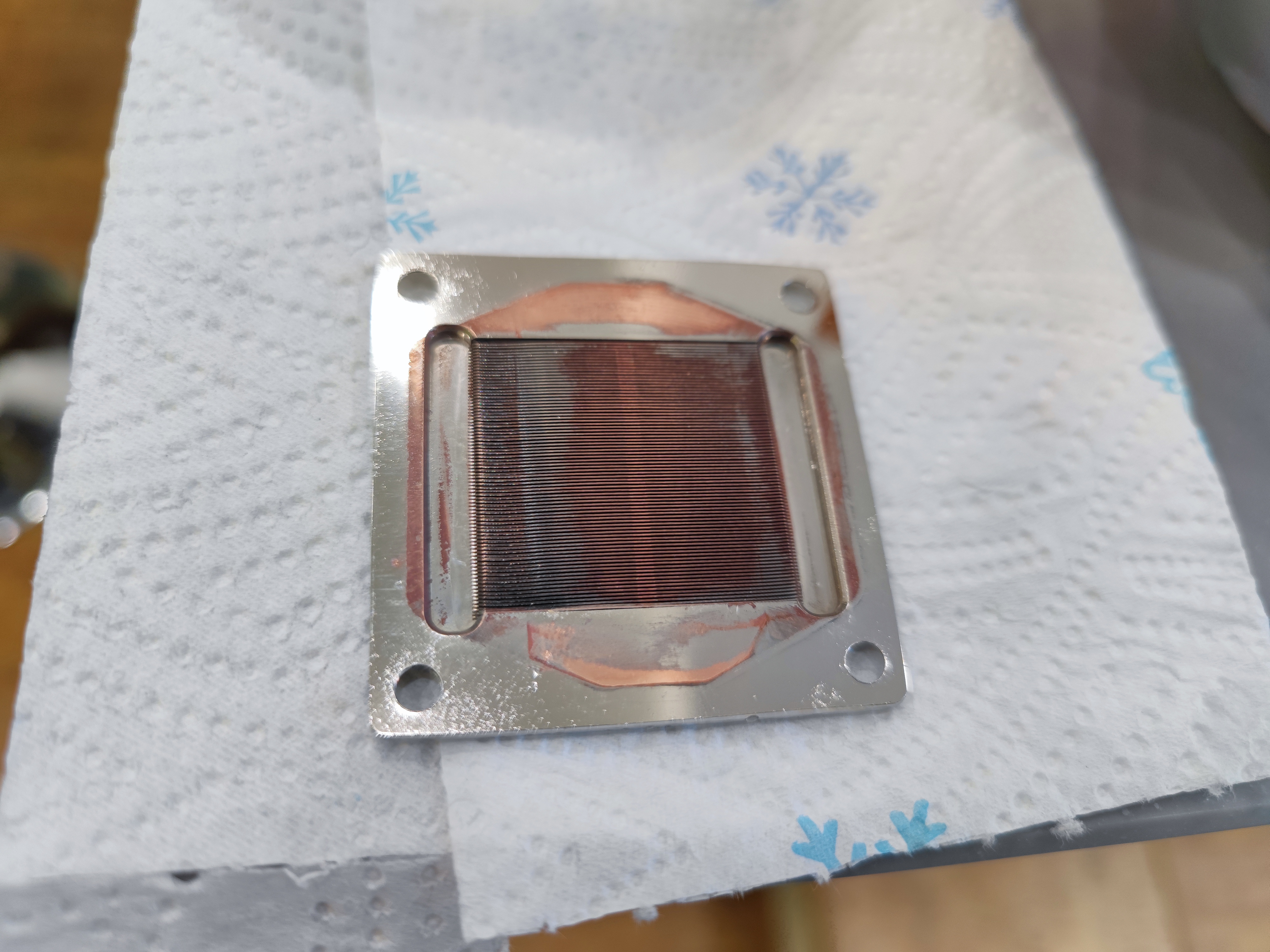 тут видно, что неравномерно слез никель с финов - в одну сторону поток явно сильнее шел, хотя довольно хитрожопое внутреннее устройство блока должно этому препятствовать
