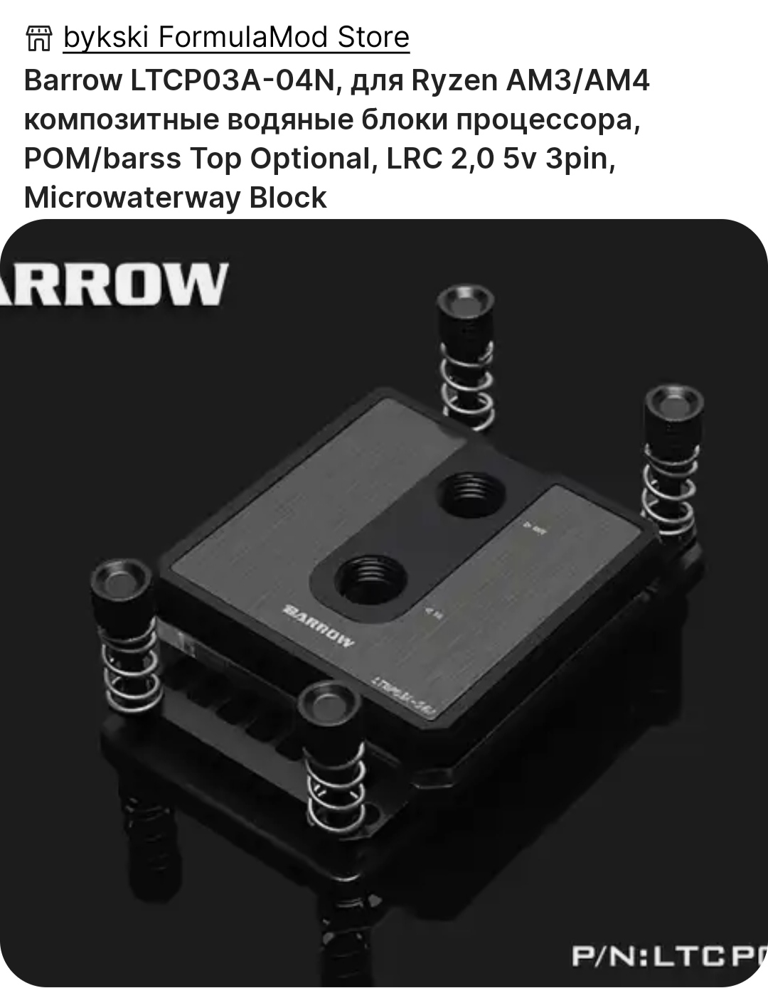 Добрый день, собрал себе кастом довольно таки давно. Но покоя не даёт температура проца.. Сейчас в корпусе 2 радиатора. 360*45мм и 240*28мм. Процессор 5600х с локом частоты 4500 и напряжением 1.2В всего. В стресс тесте только проца температура 75-80°,даже если обороты вентиляторов выставить на высокие обороты. Подозрение падает на дешёвый китайский водоблок barrow. Каналы у него 0.5мм. Сейчас заказал alphacool eisblock xpx(ещё не оплачивал). Каналы у него 0.2мм. Кто нибудь пользовался этим barrow(внешний вид и название на скрине)? Есть ли смысл его менять на другой ватер?