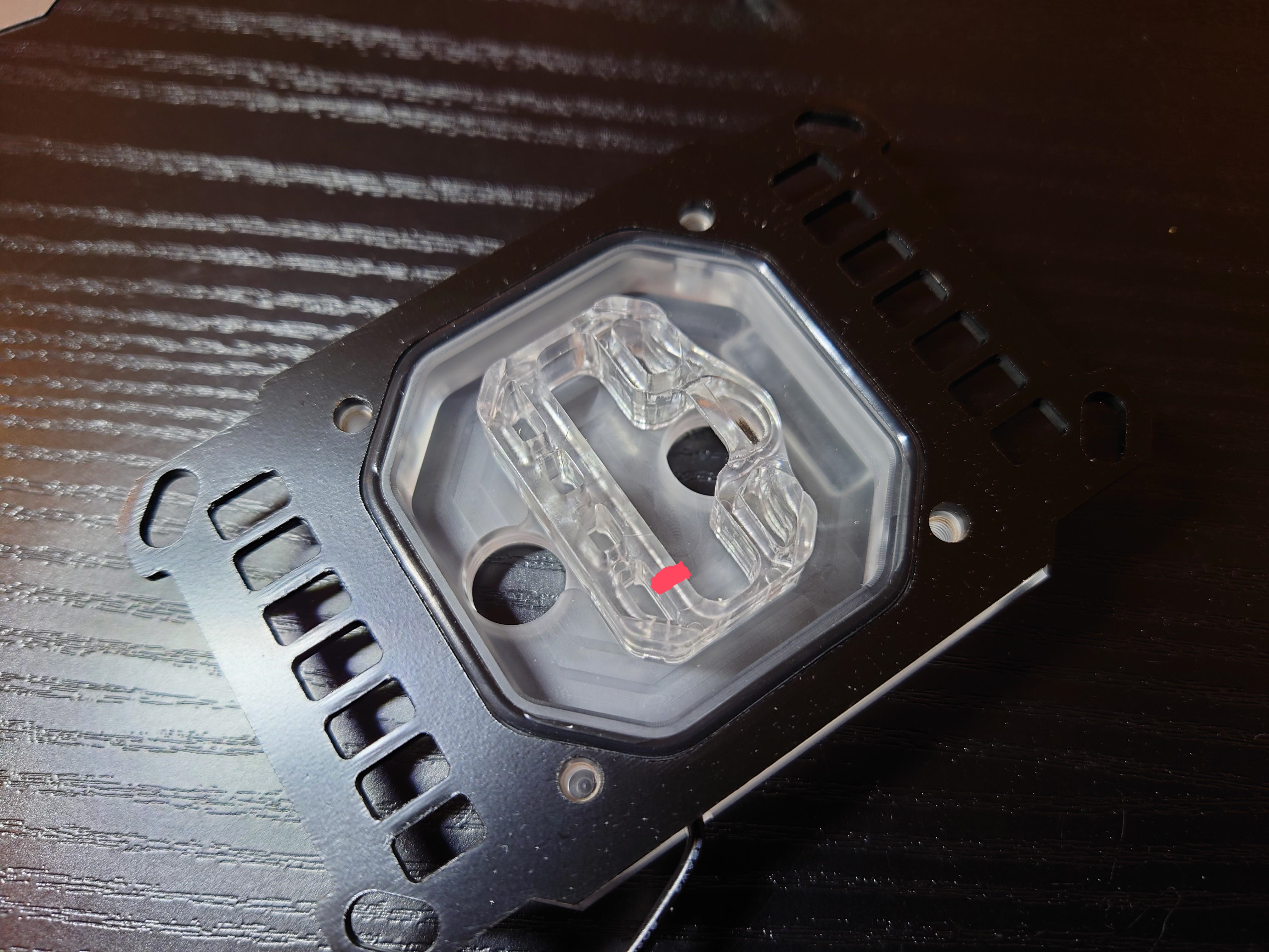 Смотрите, шаловливым рукам покоя нет Но думаю, есть ли такой смысл повозиться Есть водоблок Barrow (перевернутый на 90) и проц 5800х Я его когда вскрывал заметил что там много канавок в пластиковой детали и возникла такая идея 1) Вырезать отверстие до канавки в пластиковой детали