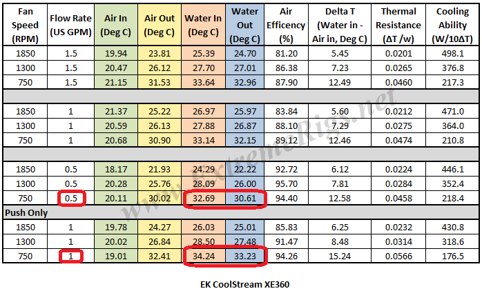 При 340 литрах дельта воды будет в три раза меньше. 2С при 113 литрах 0.68C при 340. Температура же самой воды, точнее дельта вода-воздух ( "вода вход в рады"/"воздух вход в рады")в контуре поменяется в рамках погрешностей(при большем потоке будет на десятые доли градуса меньше). А то у вас там дальше фанатазии идут про изменение работы процессора/GPU - этак можно совсем в дебри уйти. Нагрузка у нас одинаковая.