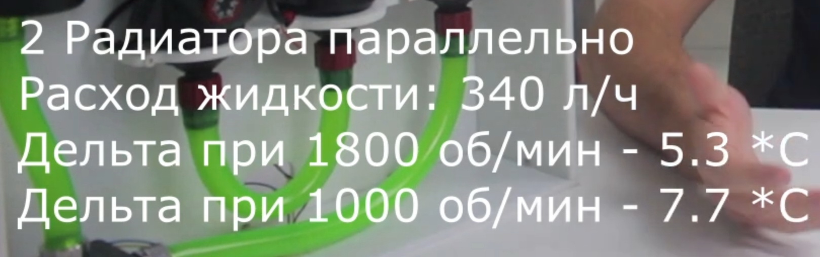 дельта при 1800 об/мин при последовательном составила 4,8°С , в то время как при параллельном - на пол-градуса... больше! Ещё раз: не температура увеличилась при параллельном соединении (как он говорит) - а дельта температуры!
