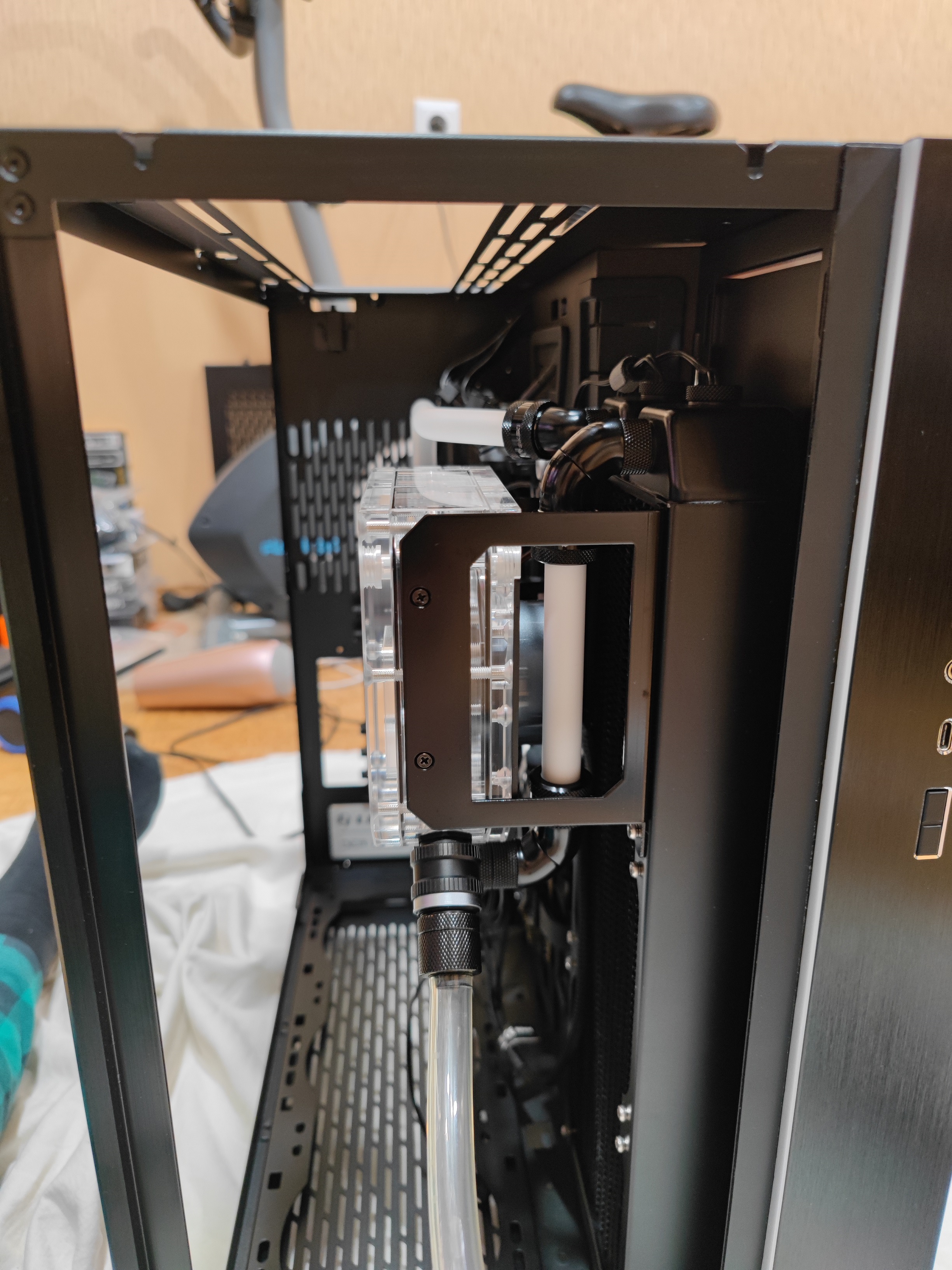 И помня понижающийся уровень на этом железе (кроме водоблока - был Хиткиллер) стал проверять каждый компонент по отдельности на 0,5. Радик: стравливает( Водоблок ХРХ - стравливает( Собранная система - стравливает! Радиатор Бикски - держит, тестер без железа вообще - держит. Я хз уже, что за избирательность к компонентам альфакула В итоге заправил, и с жижей поставил проверять. Ну блин, за пару часов полделения/деление, точнее не скажу. То ли кран моросит на тестере (ЕК, год ему примерно), то ли температурная фигня. Холодным был только тестер и радик Бикски, остальное +- теплее, например, прокачивающийся контур, без фенов. Сейчас перезакрыл кран, оставил до вечера, посмотрю. Нигде ни намека даже на пропотевание, не то, что капли...