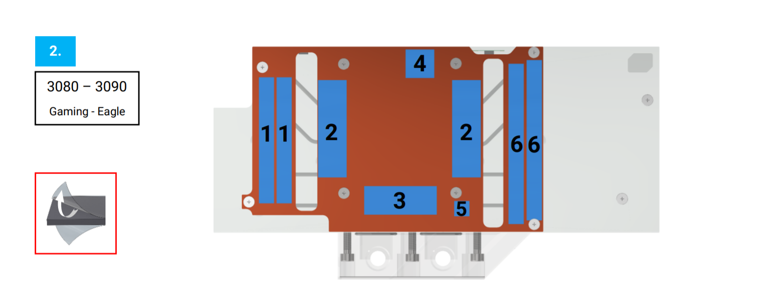 Букски за 160$ предлагает фуллкавер с активным бэком. Актуально для 3090. За 110-120$ с обычным. Ни в чем не уступает альфакул. Что не нравится в альфакул - высокое сопротивление потоку. Не самое лучшее решение охлаждения врм (на скрине зоны 1 и 6). У букски фулл цельный, без перемычек и вырезов под конденсаторы.
