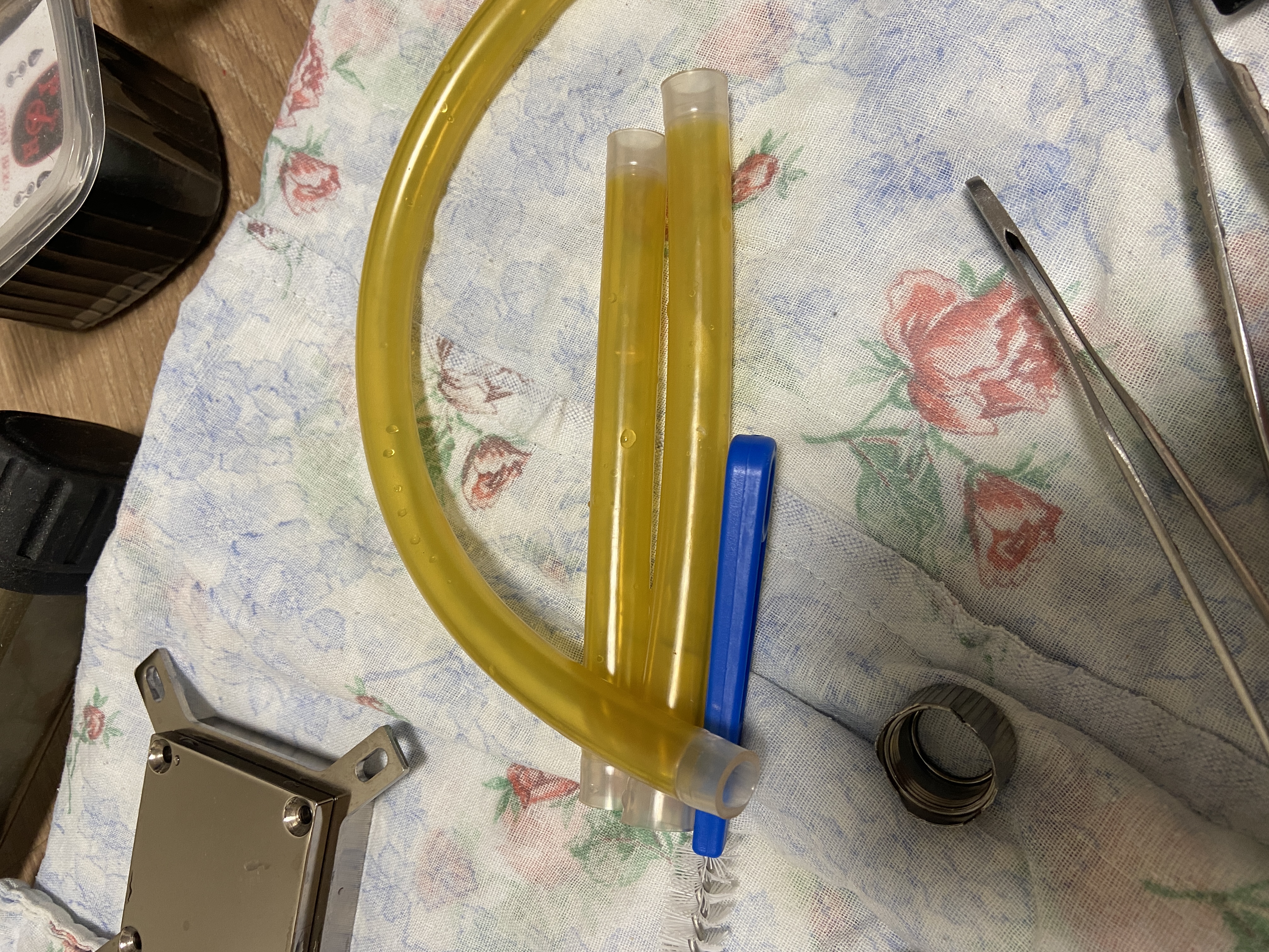 Вот нашел 3 штыря стальных уже ржавые. И шланги по цвету как будто ржавчина впиталась в них. Лимонная кислота не очищает.