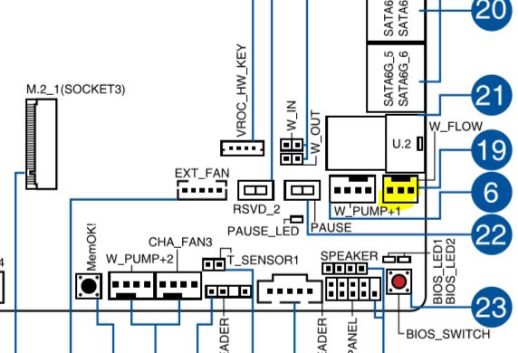 Помоему понял я где напартачил с ним в комплекте кабель идёт rpm/aquabus 3pin я его в мать зачем то воткнул попробую найти куда