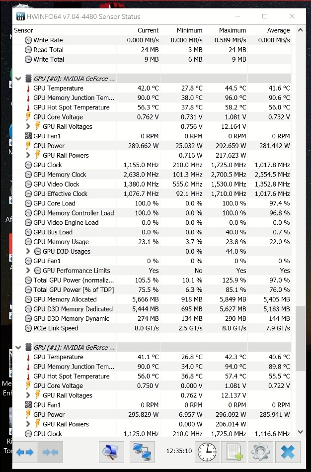 2х90 вентиля 2000rpm на бэкплейт. 90с Ночь, кондишн. Без вентилей более 100.Все никак не решусь на замену термопрокладок. И первая карта более 290 Вт не хочет кушать никак. 115 хэшей. Вторая 121. Как будто, что то её держит. Питалово? Прыгает постоянно ядро ниже 1000. И скачет напруга до 0.731. Видимо брак. Надо местами поменять. Посмотреть.
