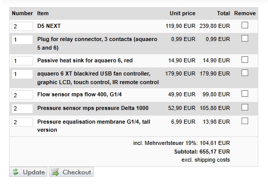 Jack78 1. Aquaero именно с экраном в отсек 5.25" требуется? Есть просто версия 6LT без экрана, которую можно в корпусе где удобно разместить. Все равно для управления и мониторинга используется ПО Aquasuite. 2. Для помп D5 NEXT нужны ещё топы, например такие: https://shop.aquacomputer.de/product_info.php?products_id=3786&XTCsid=aedgqr4kg9cclka238brh0tn3m1i0kul 3. Датчик уровня жидкости MPS Delta можно и попроще взять (1000 - это максимально допустимая высота резервуара, в см, то бишь 10 метров). При таком высоком пределе точность показаний сильно теряется. Достаточно 40 либо 100. У меня Delta 40 стоит, и хватает. 4. Клапан нормализации давления у меня показал себя абсолютно бесполезным. Он рекомендован как один из вариантов подключения Delta, но у меня в таком варианте показания уровня жидкости постоянно скакали в диапазоне от 70 до 100%, а это хрень полная. Лучше подключить MPS Delta вторым вариантом, где будут задействованы как нижний, так и верхний порты резервуара. Кстати да, если планируете использовать датчики Delta, то позаботьтесь, чтобы у выбранного резервуара были дополнительные порты в верхней крышке, а так же в нижней части.