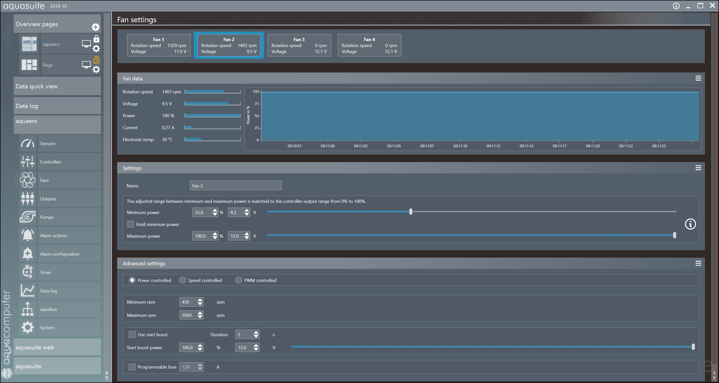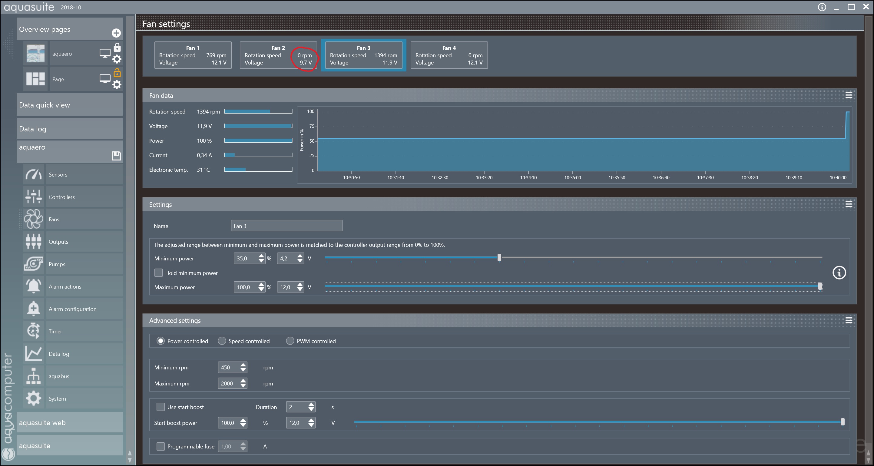 Использую Fan1 и Fan2, к каждому подключено по 3-и одинаковых вентилятора, все настройки по дефолту. Но в аквасюте пишет что вольтаж разный на Fan1 и Fan2.