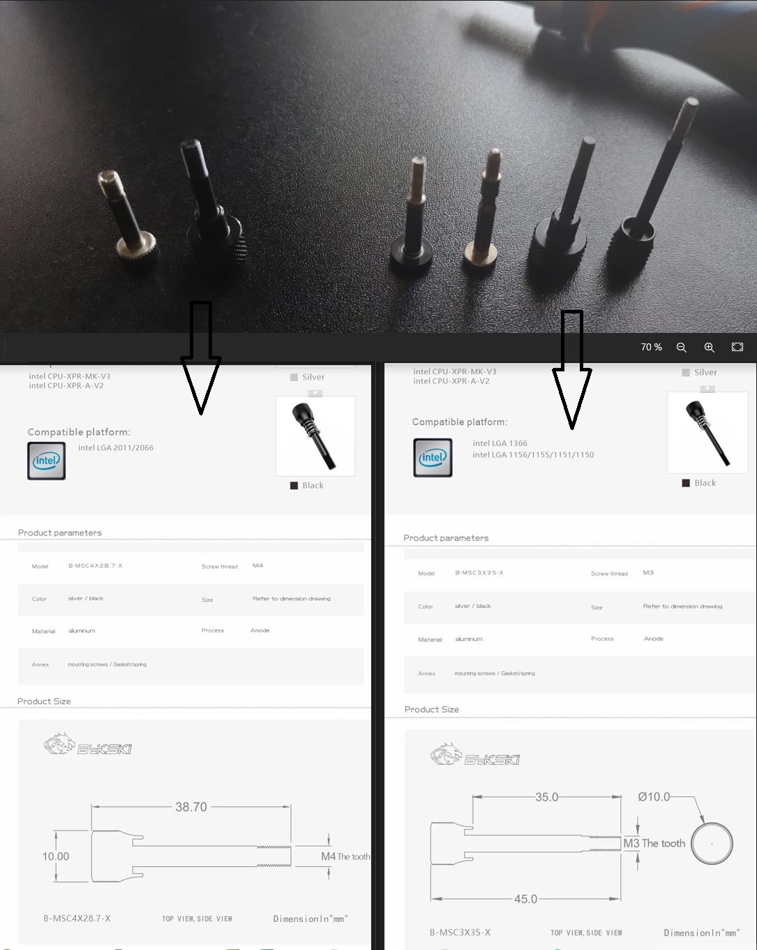 мне кажется этот вопрос решается гайками и шайбами вкручиваем нужные винты в бек, штатно это UNC 6-32, если не ошибаюсь бек притягиваем к плате гайками, получаются шпильки для водоблока дальше комплектными накатками водоблок притягивается к плате