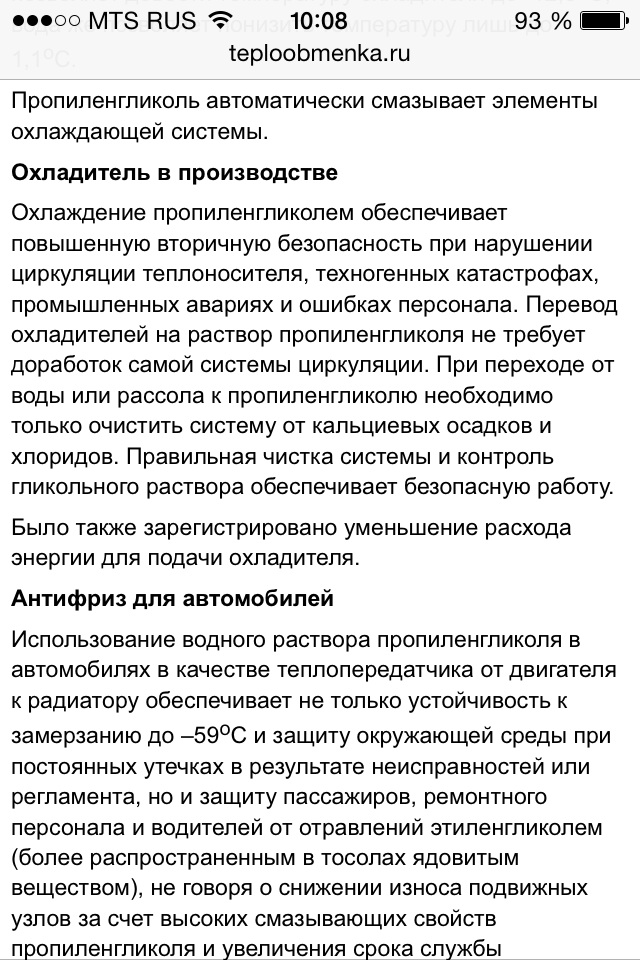 Azraelle я просто оставлю это здесь. А еще пропиленгликоль обладает большей теплоотдачей чем вода, то есть быстрее охлаждается, но инженер из Украины, вам объявит сейчас об обратном. Давайте возьмем литр воды, добавим в нее присадки антибактерицидные, потом антикоррозионные, потом добавим пропиленгликоль для смазывающих свойств и более быстрой теплоотдачи и будем наслаждаться самопальным термагентом цвета детской неожиданности ценой в чугунный мост. Не порите чушь, покупаешь готовый продукт за 1000р которого хватит на всю жизнь и не пудришь себе мозги.