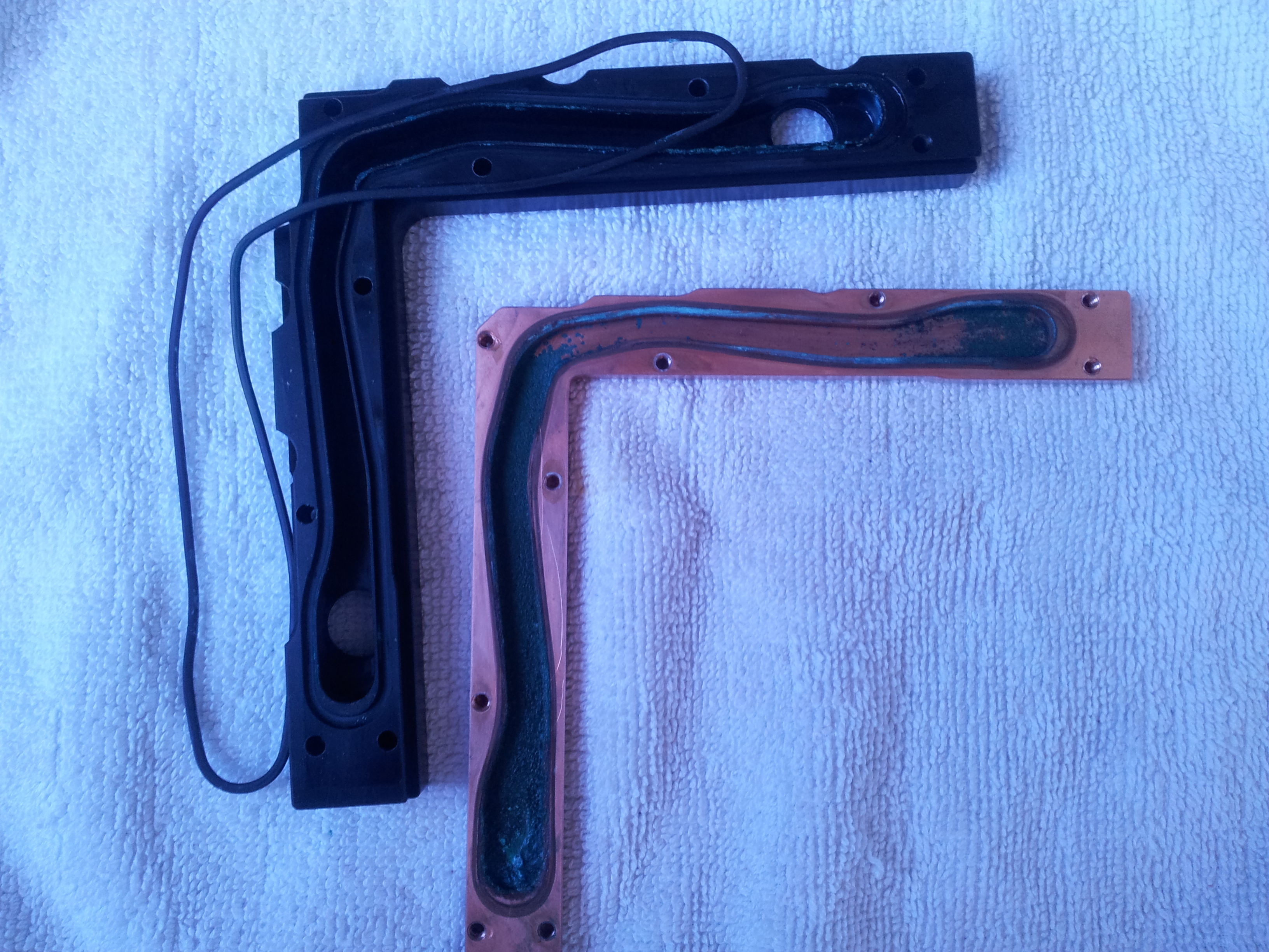 В общем через 10 месяцев "бульканья" жижи Mayhems X1 Clear в контуре сильно упал поток (с 3,2 л/ч до 1,9)...решил разобрать систему и обнаружил: один из двух водоблоков в системе не никелированый EK-MOSFET ASUS Maximus V Gene - Acetal