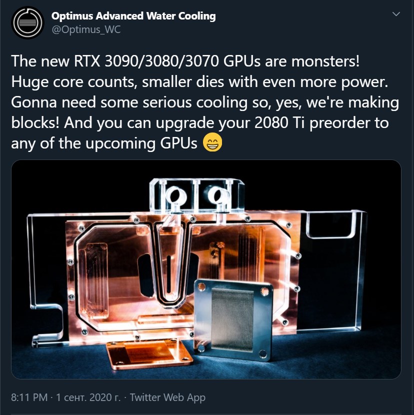 Оптимус только обещают) Для туринга обещали-обещали, но так и не выпустили фуллкавер. По их концепции, теплосъем с чипа обеспечивает отдельная пластина. И недавно они сказали, что она готова только на 90%. Со времен туринга). Так что на них нет смысла рассчитывать.