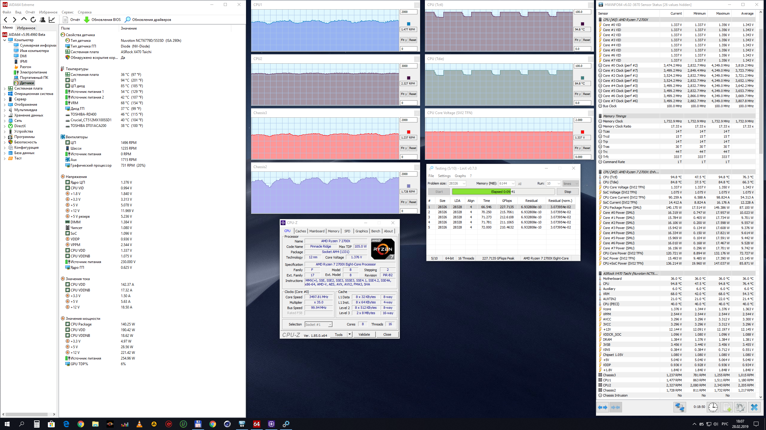 А тебе зачем? Ну, на 4 ГГц у меня 380-390 получалось. Скринов не делал, сейчас поезд уже ушёл. Специально под это собирать стенд не хочу. Достаточно 1800Х у меня в галерее поглядеть и помножить на 2. Температура проца, кстати, была около 80 градусов, что не есть гуд.