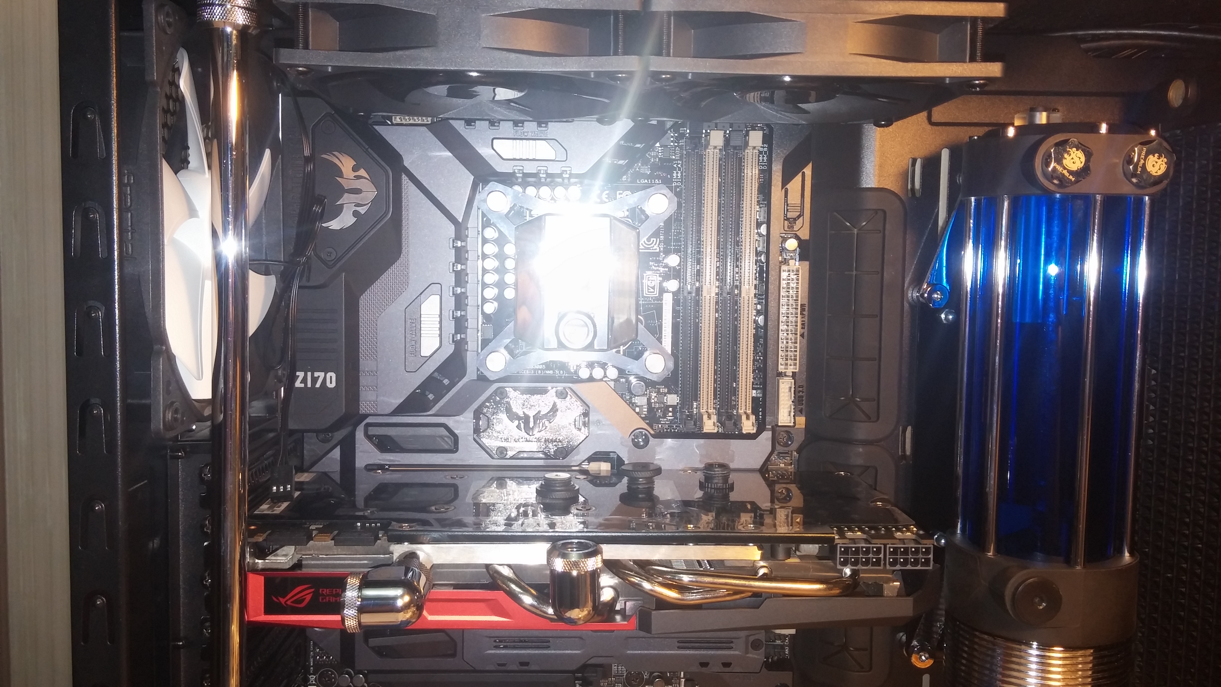 Всем спасибо за помощь! Радиатор присмотрел не из серии EK SE, а немного потолще - EK-CoolStream PE 360 (Triple). Про видео скорее всего буду брать 980 в исполнении асус, а именно посейдон. Так как раз, вертушки будут помогать немного в охлаждении карты и общей системы. Поток планирую пустить рез-помпа-радиатор-проц-видеокарта-рез.