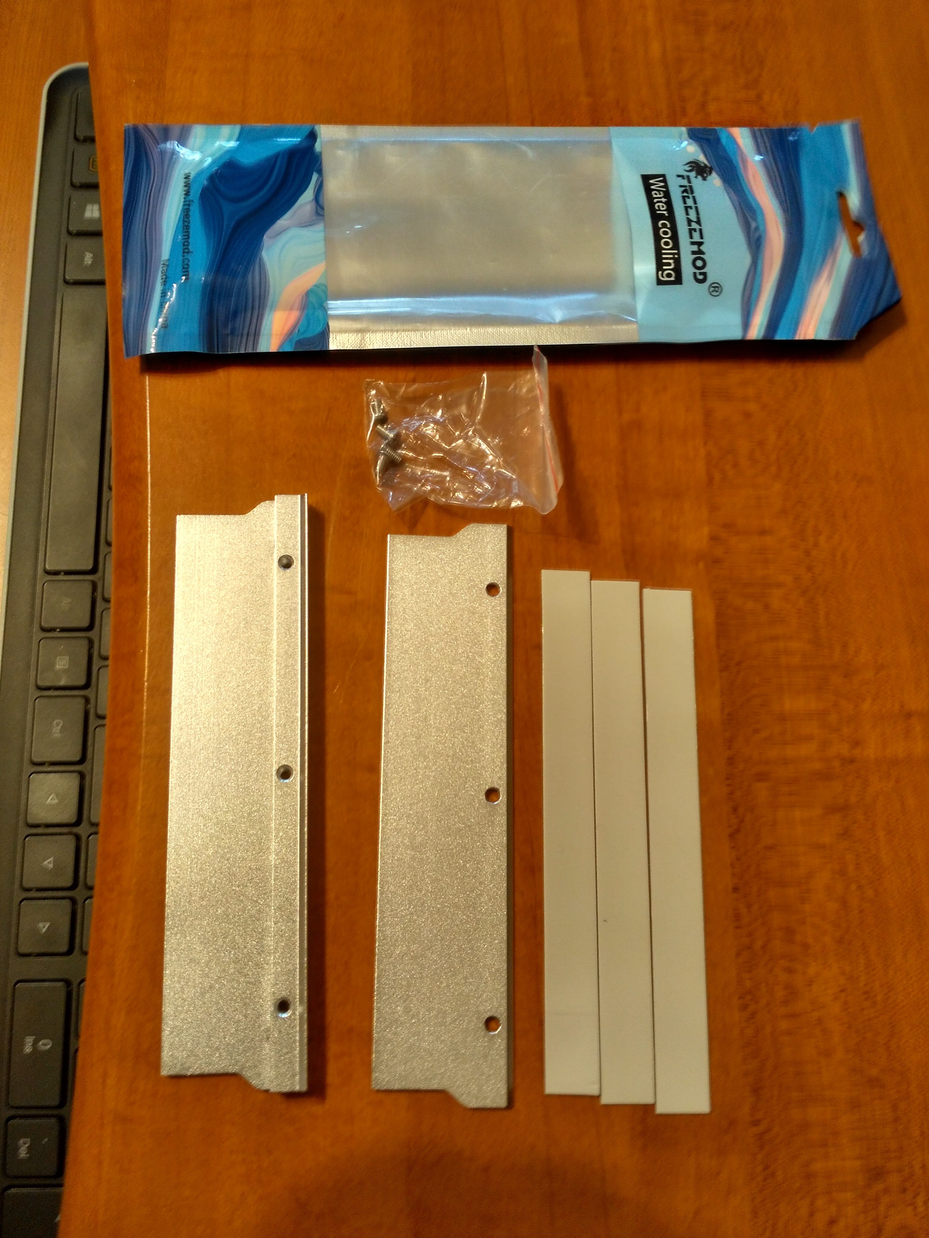Вот такой комплект, в заказе сразу идут два модуля на 2 планки памяти. К каждому модулю три серых термопрокладки неизвестного качества, думаю их стоит заменить, на arctic. Следующие фото это сравнение веса и размеров радиаторов freezmod и corsair просто так может кому будет интересно. Толщина пластин MEO-PM0AB от freezmod 1,8-1,9 мм у corsair 1.4 мм в толстой и 0,8 мм в тонкой части, но высота и следовательно площадь у corsair больше.