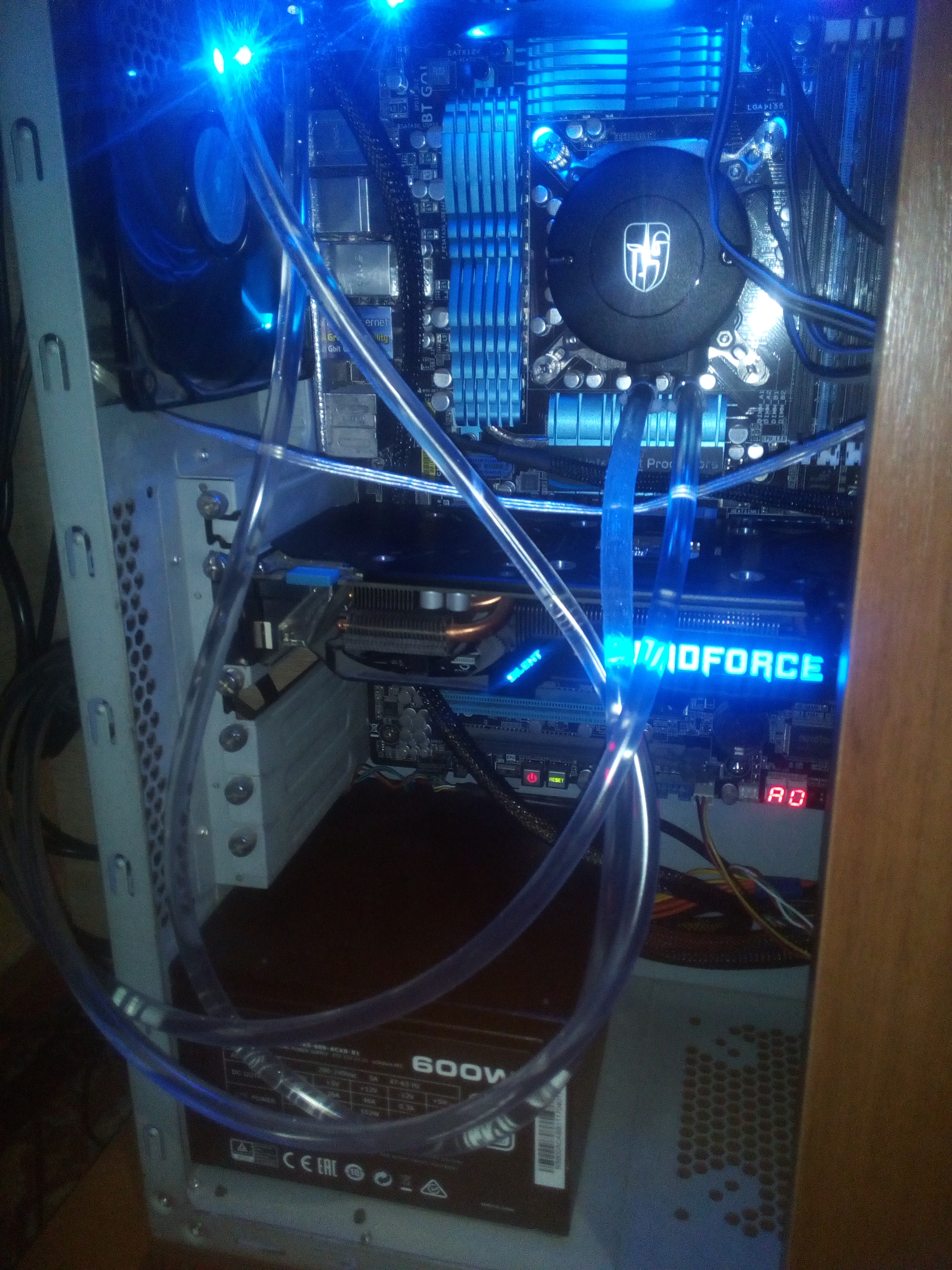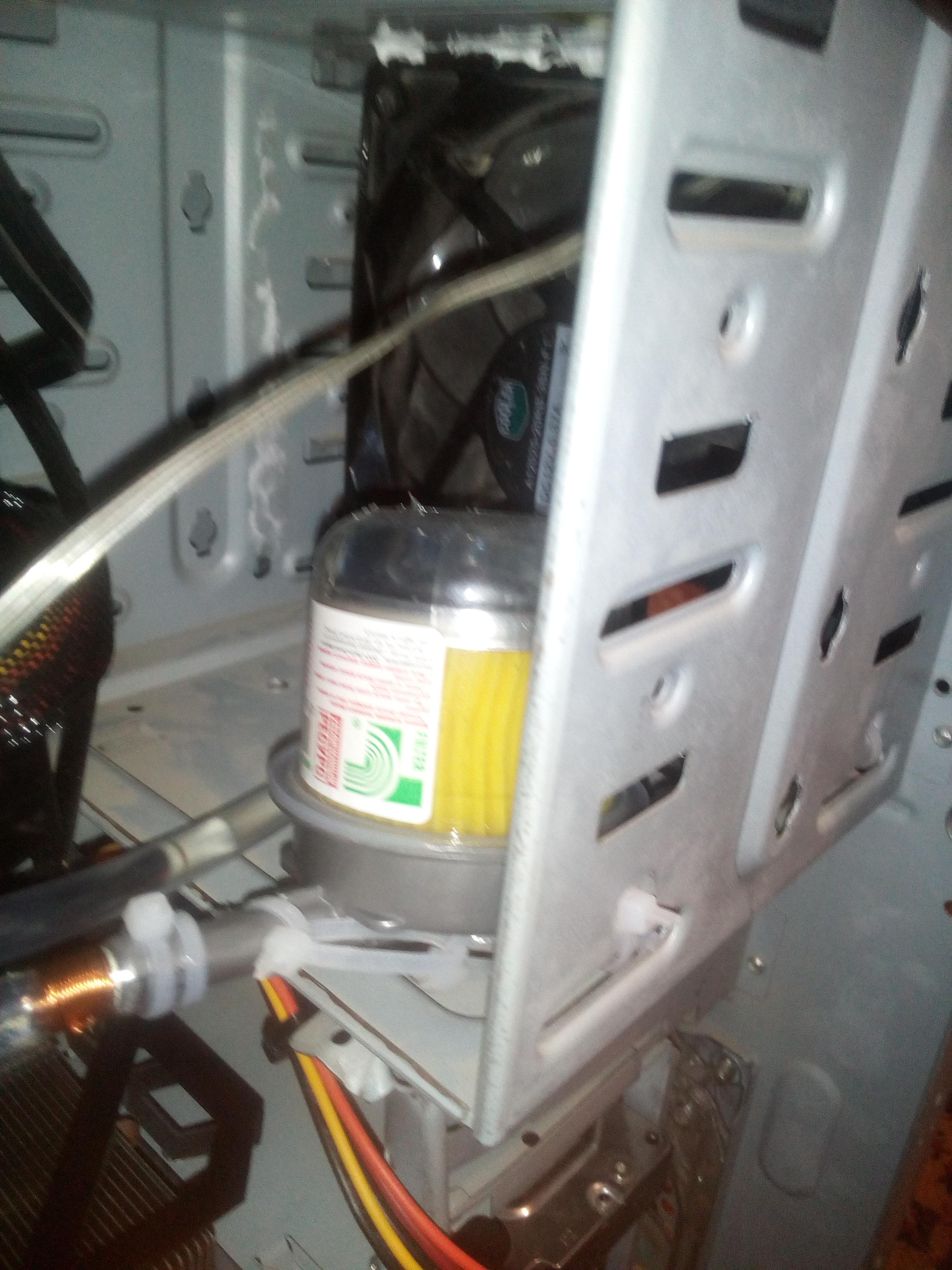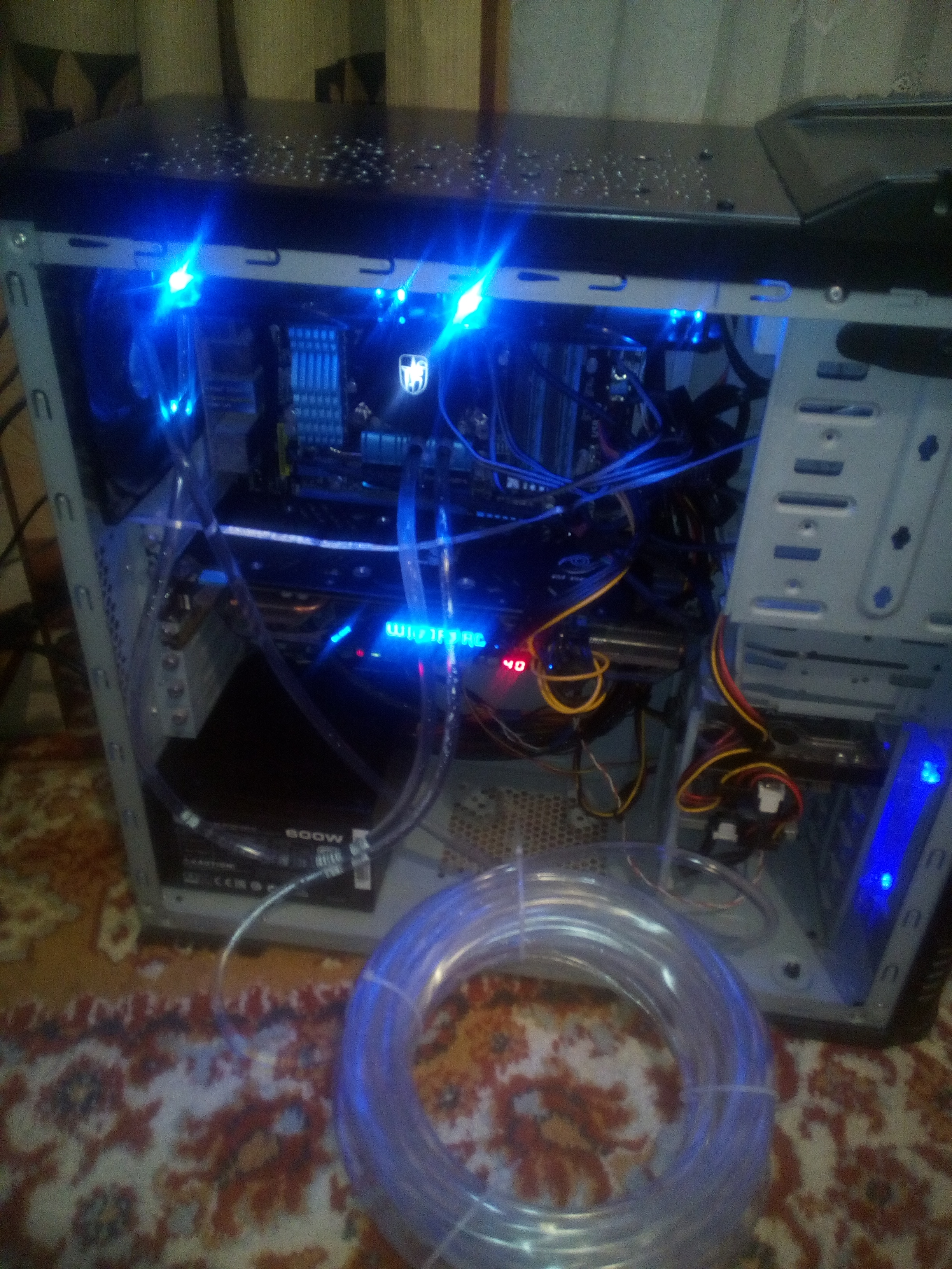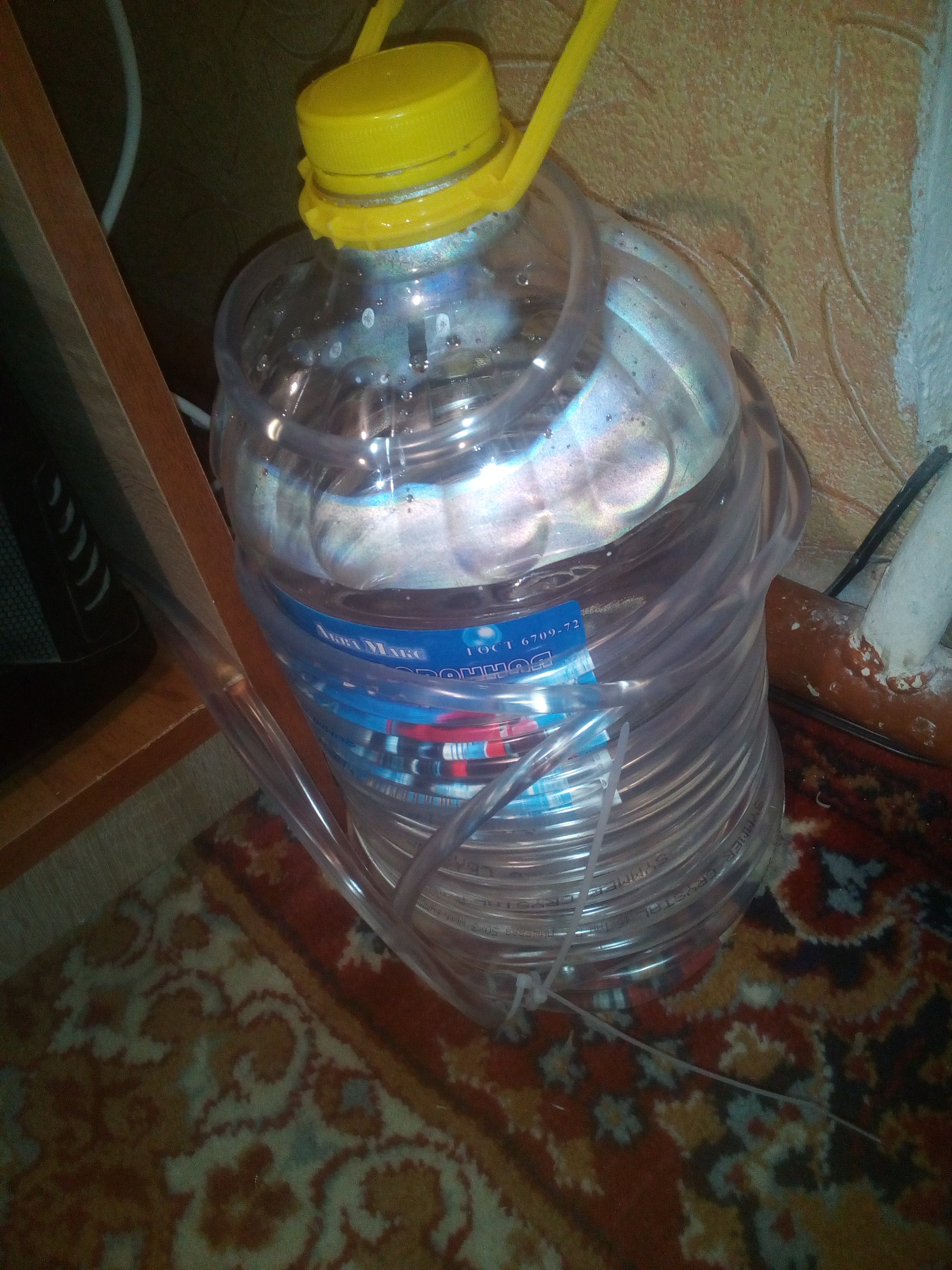 Добавлено спустя 45 минут 26 секунд: в общем получилось пока как то так трубку обвил вокруг бутыля с дисцилиратом , рядом стоял по такому же принципу можно сделать кулер , думаю должно получится интересно пока что для повседневного пользования прирост очень заметен в играх выше 55 градусов не поднимается температура , вертушки радиатора на минималках (600 об.)