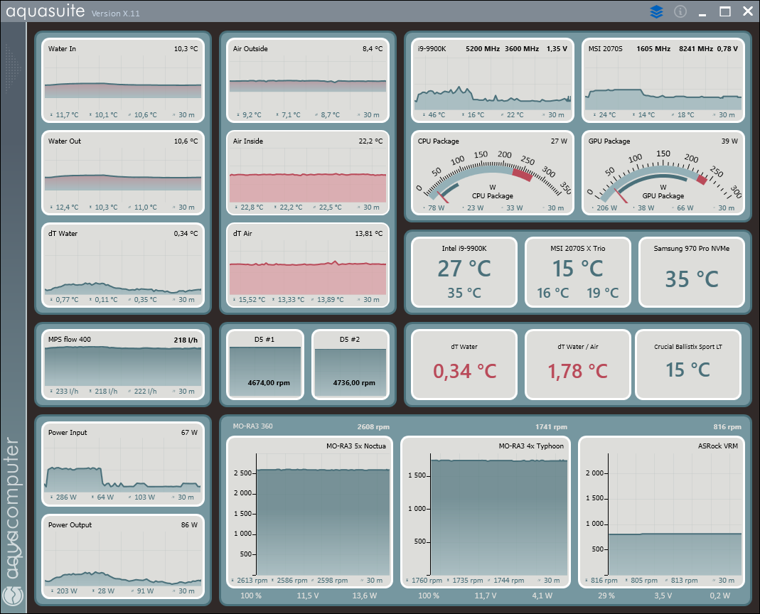 итого имеем dT Water dT Air Top dT Air Side dT Air dT Top/dT Side а дальше место кончилось у датчиков а мне еще минимум одно нужно, что бы сделать dT W/A