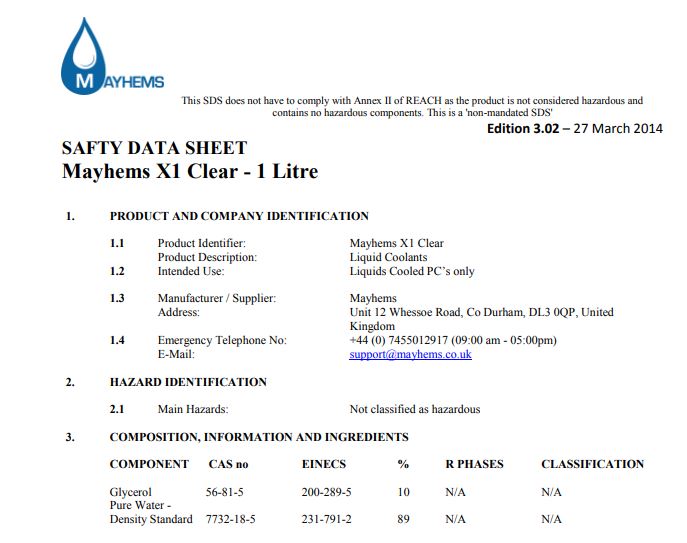 Состав Mayhems X1: Glycerol - 40% Pure Water - 59%