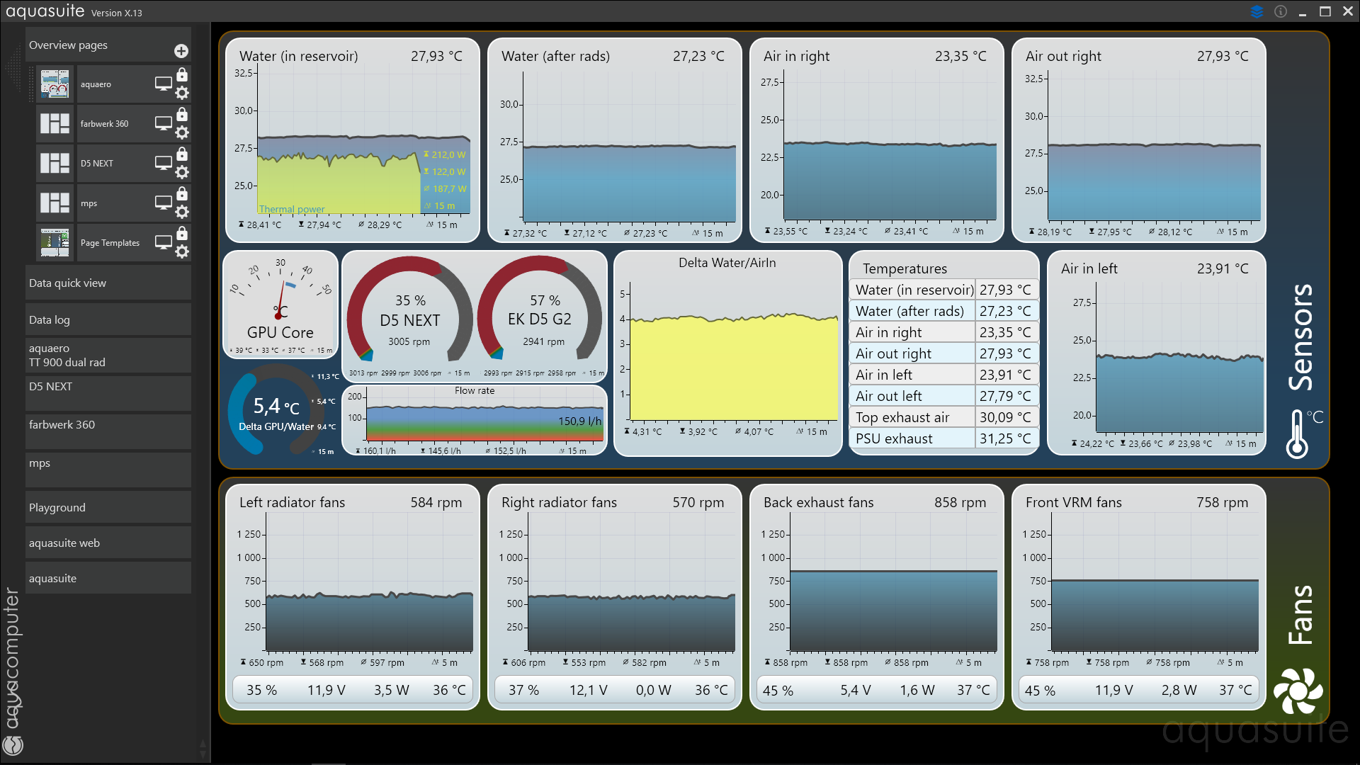 И воздушные потоки точно не менялись при обсуждаемом изменении (снижении потока жидкости в контуре). Т.е. если датчики воды раньше подвирали, то и сейчас подвирают с равной вероятностью. Я могу вместо второго датчика (который after rads) задействовать датчик в D5 NEXT. Он в сущности стоит сразу после указанного датчика, но если указанный я хоть как-то калибровал то датчик в D5 NEXT не калибровался никак.