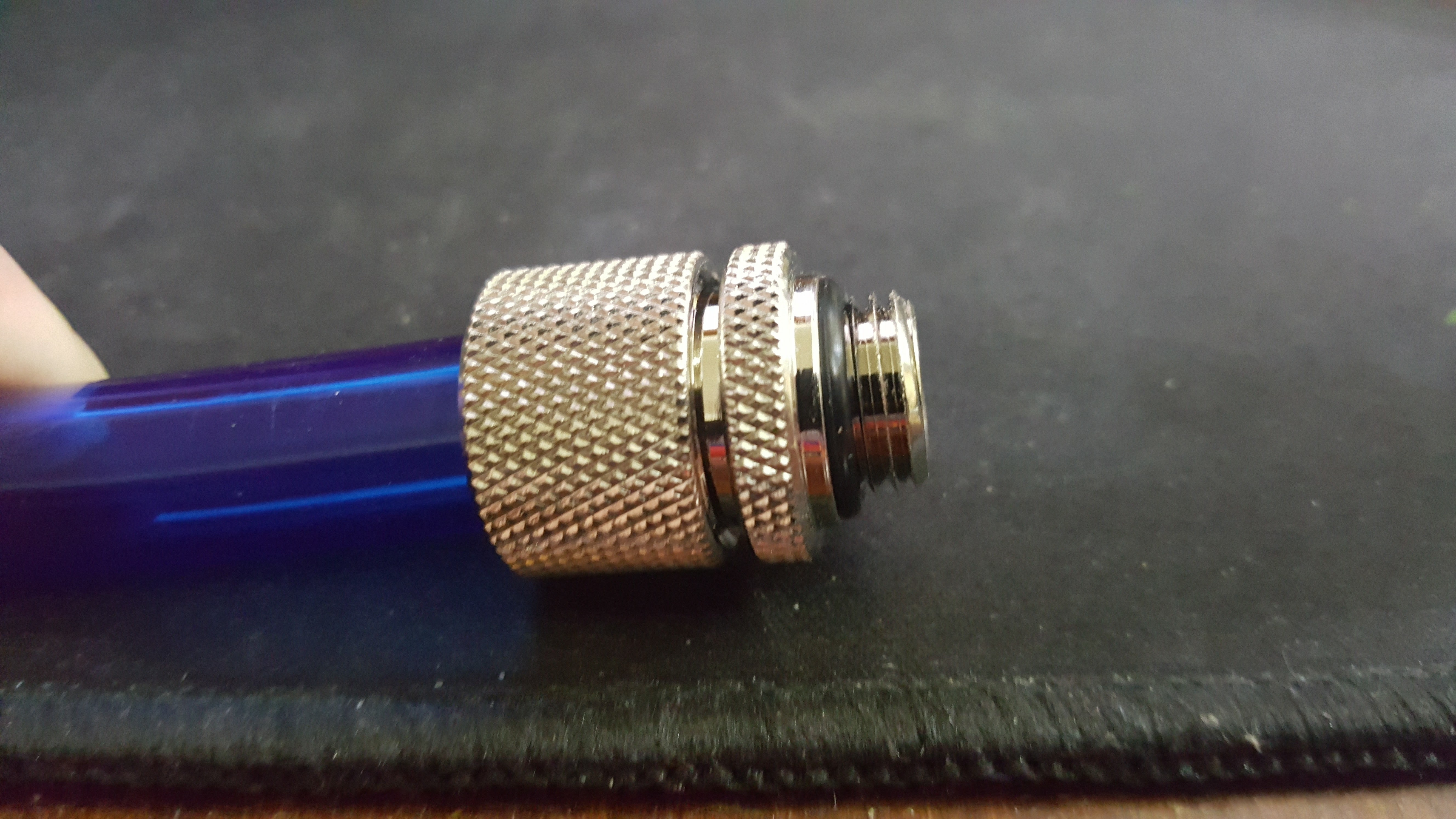 Покупал в разное время в двух разных местах один и тот же шланг PrimoChill PrimoFlex Advanced LRT 10/16 белый - так вот с первым фитинги закручивались до конца без проблем, а со вторым очень тяжело, так что часто зазор 1-2 мм оставался. Закручивал всегда пальцами, без фанатизма. На герметичность никак не влияло.