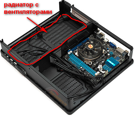 badbeat, в обычных корпусах места внутри полно и вентиляторы водянки имеют откуда брать воздух и куда выкидывать его. В твоём случае радиатор с вентиляторами будет впритык с обеих сторон к стенкам корпуса. На одной стороне есть вентиляционые отверстия а с другой (на съёмной крышке корпуса) нету. Как ты представляешь забор или выкидывание воздуха (это смотря как будешь ставить радиатор с вентиляторами на нём)если там дырок нету?