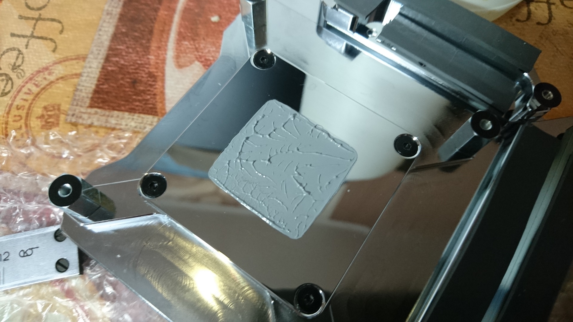 atlonn я же написал "хоть я и не довёл подошву до идеала." Да, наждачка на зеркале. По металлической линейке водоблок подошва стала почти ровной, я пошёл тестировать отпечаток и температуры. По сравнению с тем, что было, скинуло минимум 10 градусов.