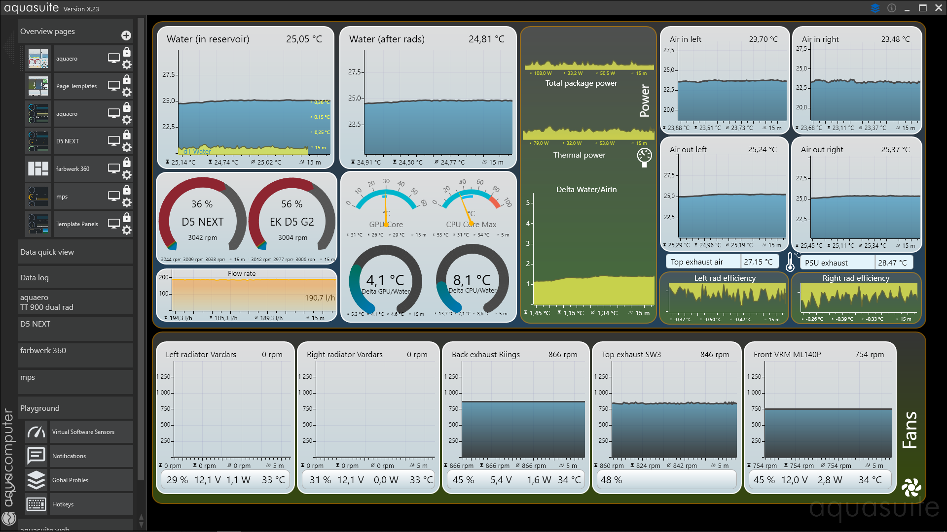 А and00 процитировал, что это нормально :-/ На экране я нихрена не нашёл. Вообще, я очень разочаровался в Aquaero. Экран убогий, всё очень мелкое и трудно различимое. Возможно, когда всё-всё соберётся и настроится я изменю своё мнение.