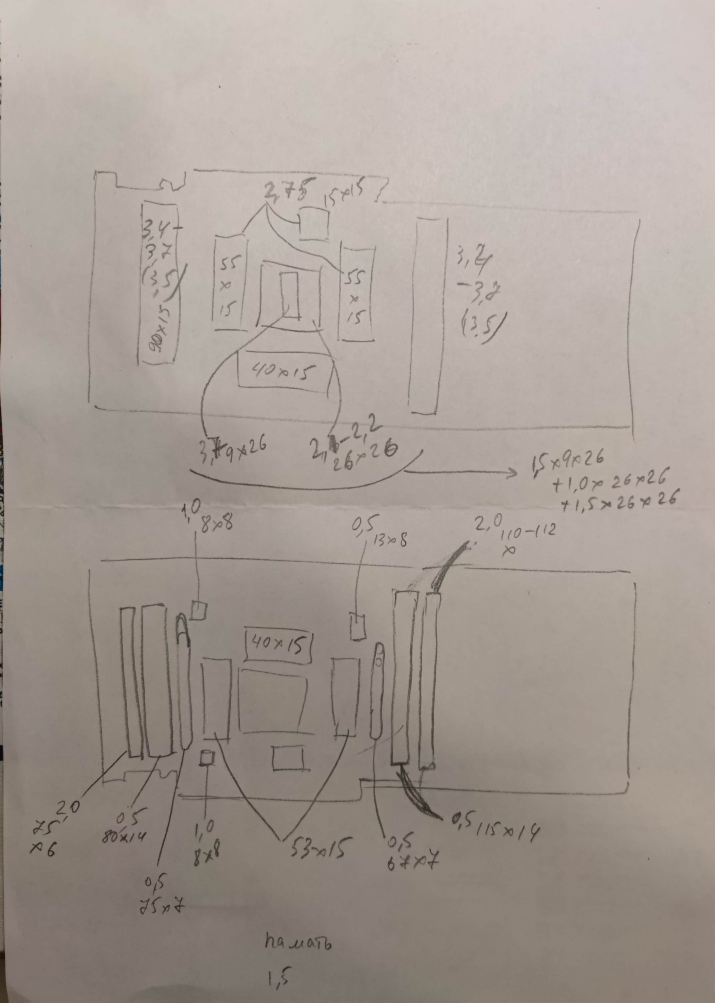CHiCHo Огооо, спасибо . По чертежу 2 вопроса. 1) Снизу ты замерял площадь контактных поверхностей, а сверху уже сами прокладки ДхШхТолщина? 2) А зачем на ГПУ термопрокладку положил
