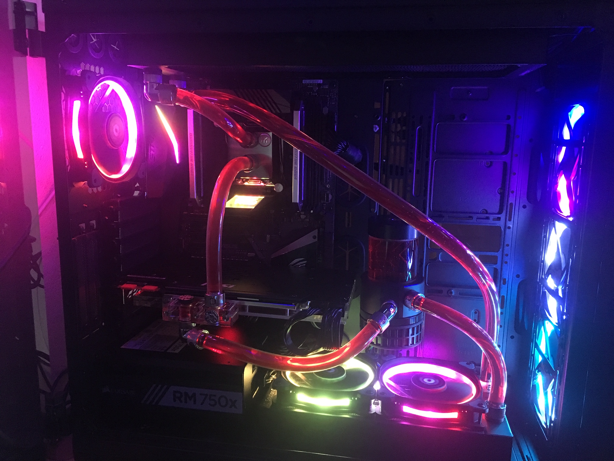 muhamedzianov Что-то мне кажется что у вас в корпусе неправильно направлены вентиляторы из-за этого температуры выше, может места маловато из-за этого внутри воздух нагрет больше чем надо. Либо не хватает третьего радиатора - у меня на видеокарте в играх 45-46, но это просто 1080 хотя и сильно разогнанная, процессор в играх в диапазоне 60-62. Температура воды 32.5 когда просто за компом сидишь, в комнате режим тропиков (25-27).
