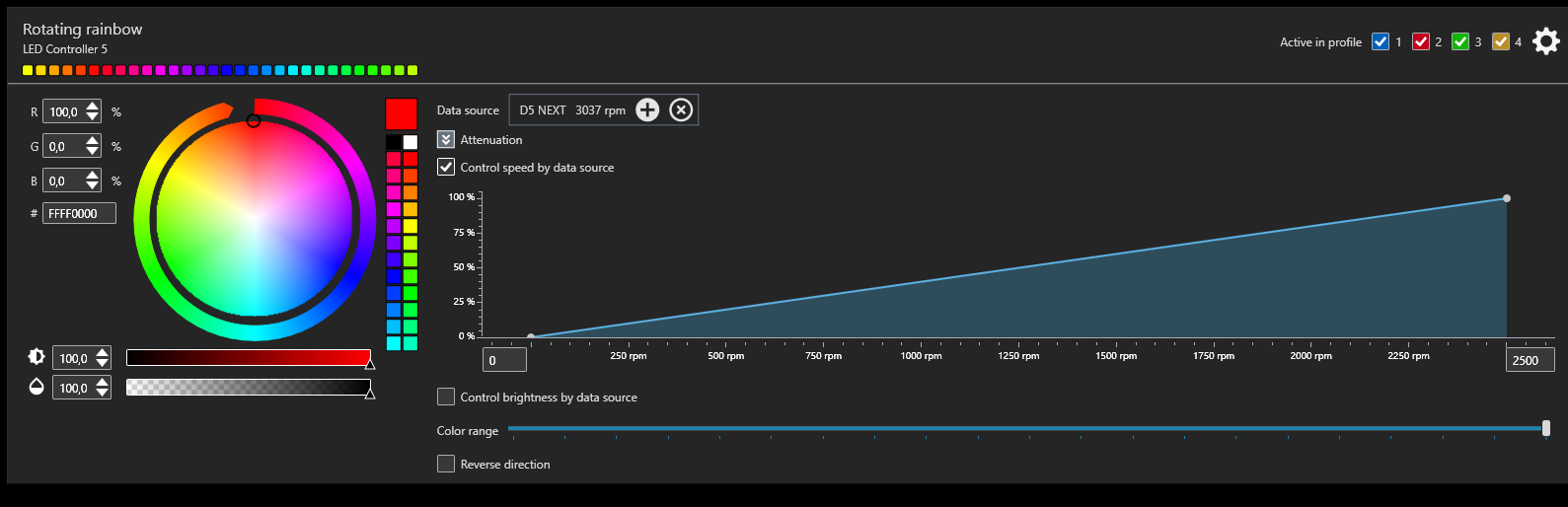 Первое точно можно, эффект Color switch, умеет в градиенты, хотя не идеально отрабатывает при пограничном значении температуры, но в целом - годно Второе пришлось проверить, от rpm - может.