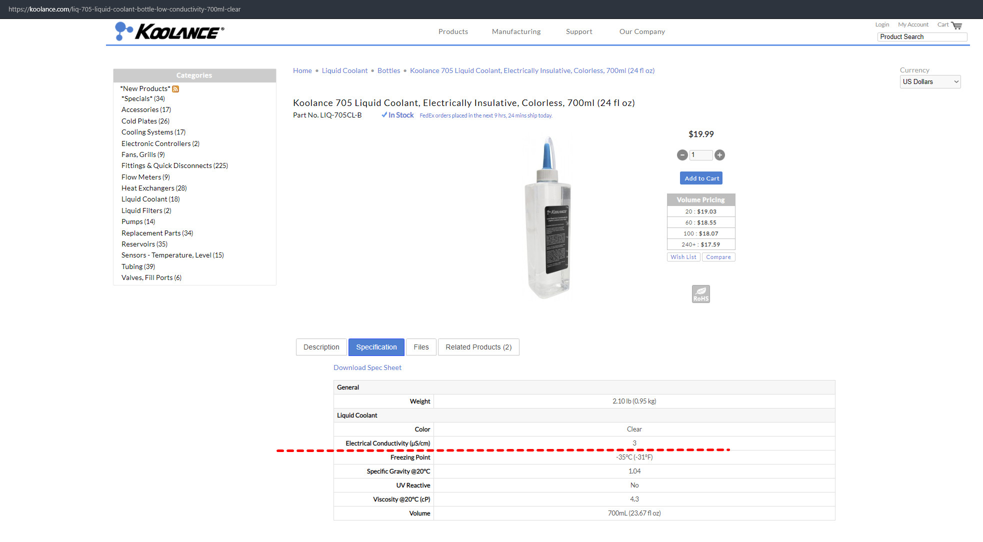 nag77 Ха... XSPC заявляют "Electrical Conductivity <2µS/cm at 24C * (most competitors struggle to reach <10µS/cm)" и это при 10% пропиленгликоля от массовой доли в растворе... Глядим чего заявляют Koolance на совою 705 Liquid Coolant с её 52,5% пропиленгликоля от массовой доли в растворе ..: