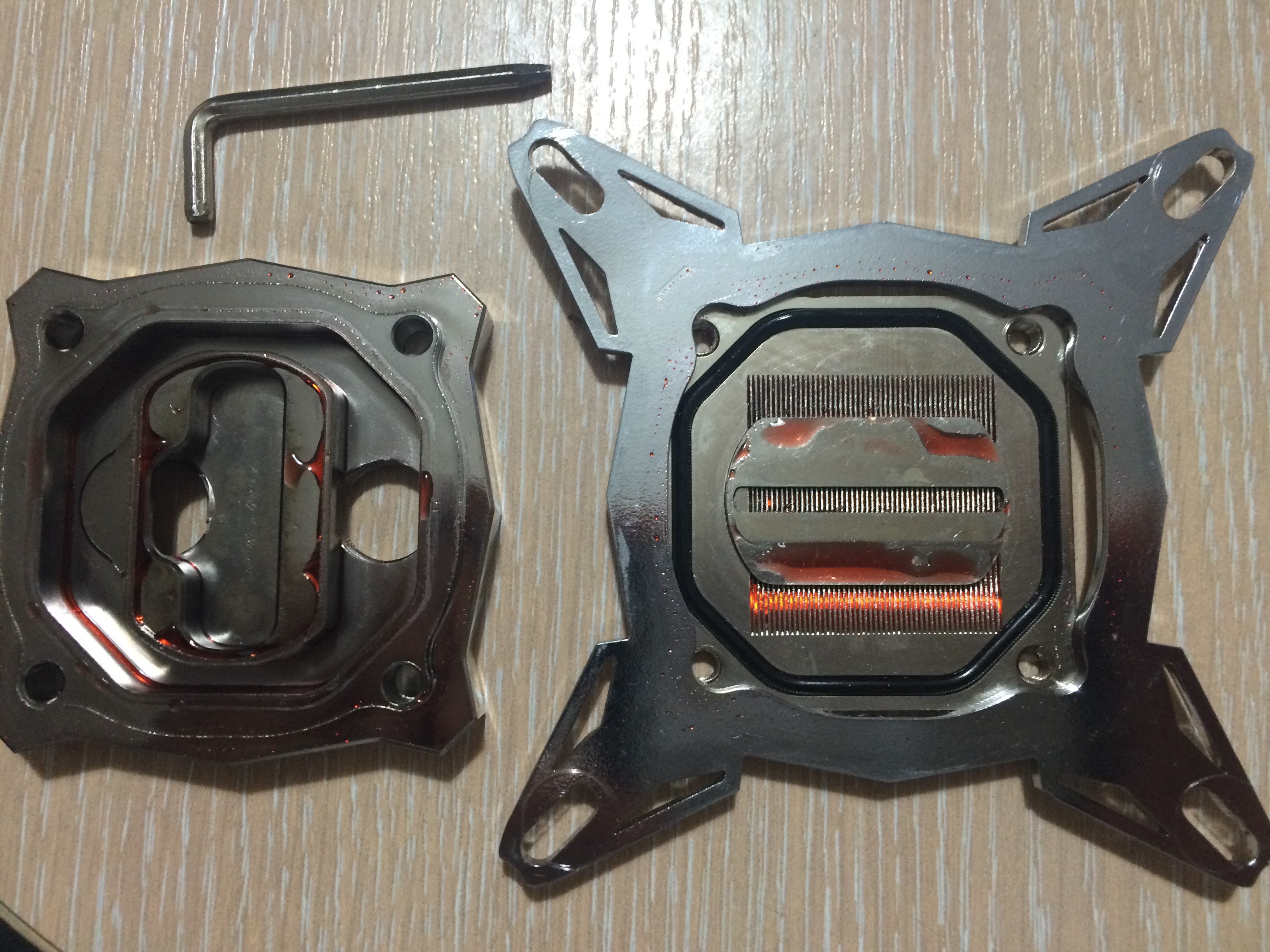 Пришел наконец таки EK-Supremacy MX и последний радиатор. На днях придут шланги и на выходных начну собирать и проводить тесты сначала с китайцем, а потом с EK-Supremacy MX. А пока даже по виду медной пластины у EK-Supremacy MX гораздно лучше и мощнее каналы чем у моего китайца. Размер самих канавок примерно одинаковый на глаз, но вот по высоте у ЕК очень солидно. Посмотрим будет ли разница. Зря я сразу не заказал ЕК, а взял китайца(