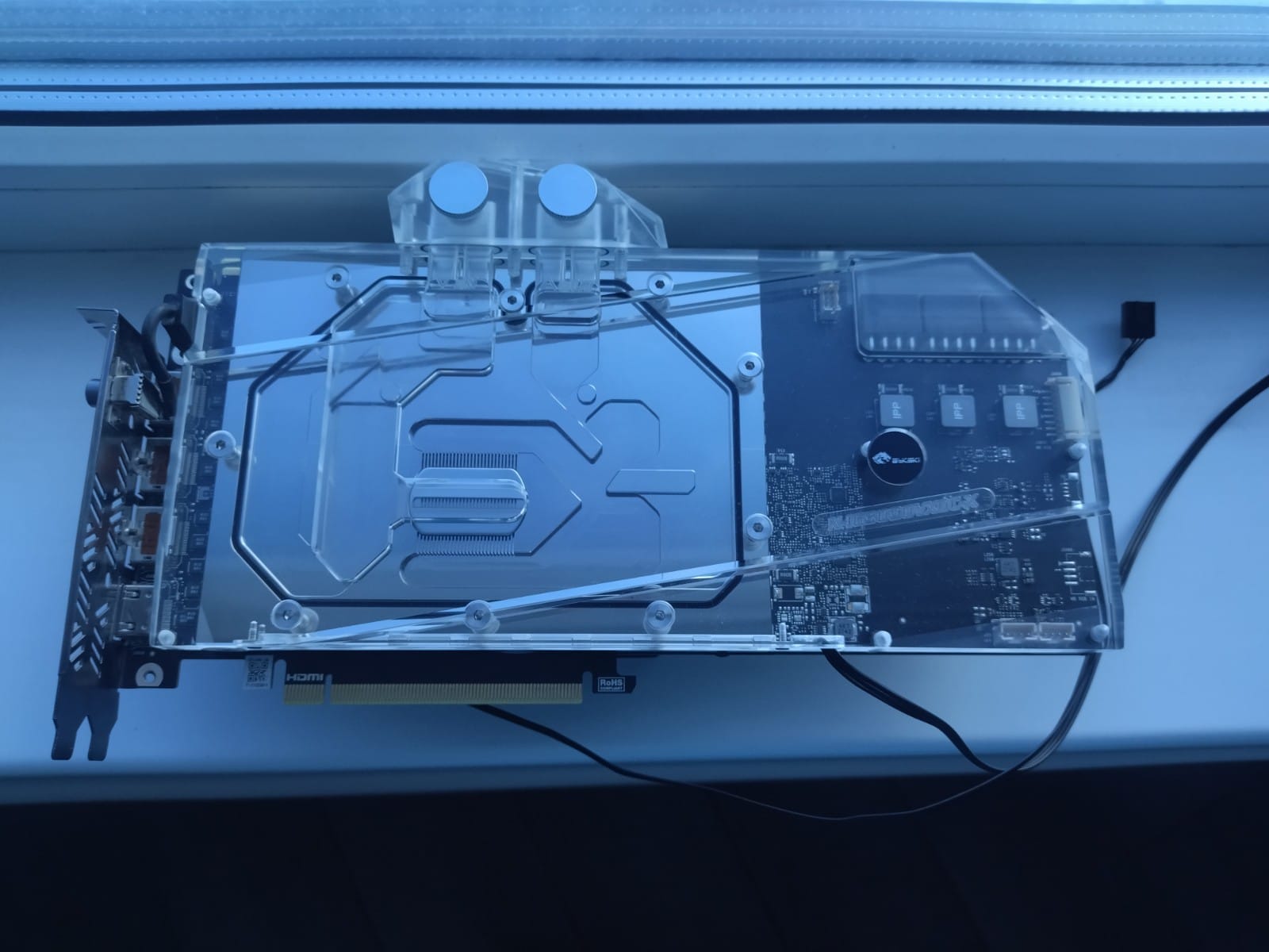 вот такие пироги с котятами, место в бэке просверлил навсквозь 2,5мм сверлом и дорезал резьбу на всю длинну, штутный короткий винт заменил более длинным, образанным дремелем в размер собрал, опрессовал - держит щас пойду на нерво успокоительный ужин с чем покрепче, и буду помолясь собирать 3090, вроде никаких повреждений от залива на ней не было тьфу тьфу тьфу естесно... ещё на одной точке установки винта в акрил, заметил микро трещины, но там бежать не может, но на всякий капнул супер клея