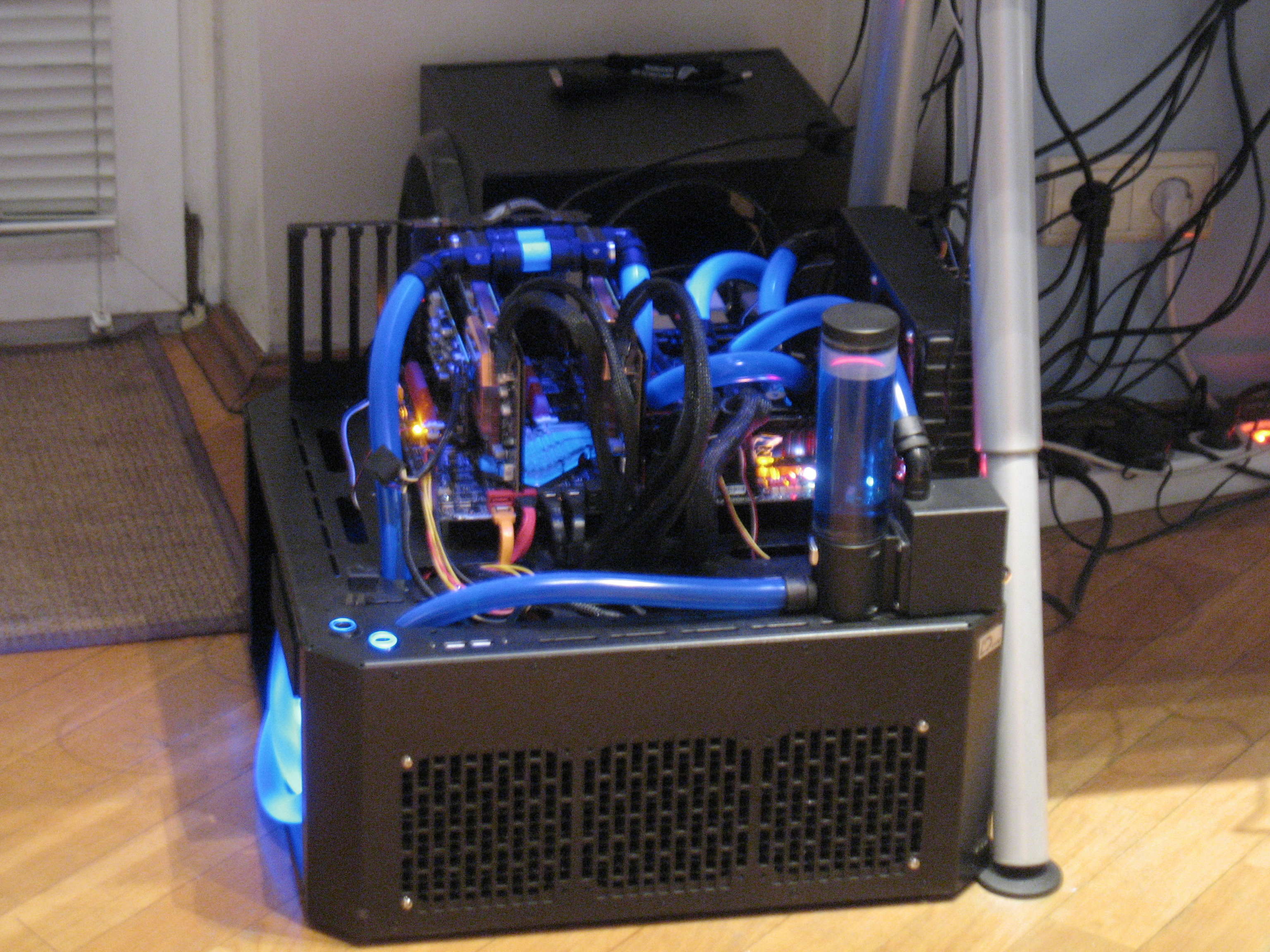 Вот решил выставить для статистики (комп собран год-полтора назад и неоднократно переделывался),особой красоты нет,т.к. корпус закрыт и стоит под столом в углу-главными критериями были:функционал и тишина.