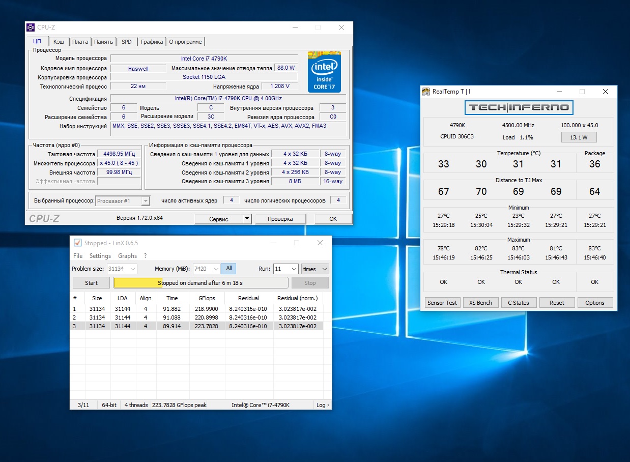 Решил тестировать на 4500 мгц при 1.21 в.
