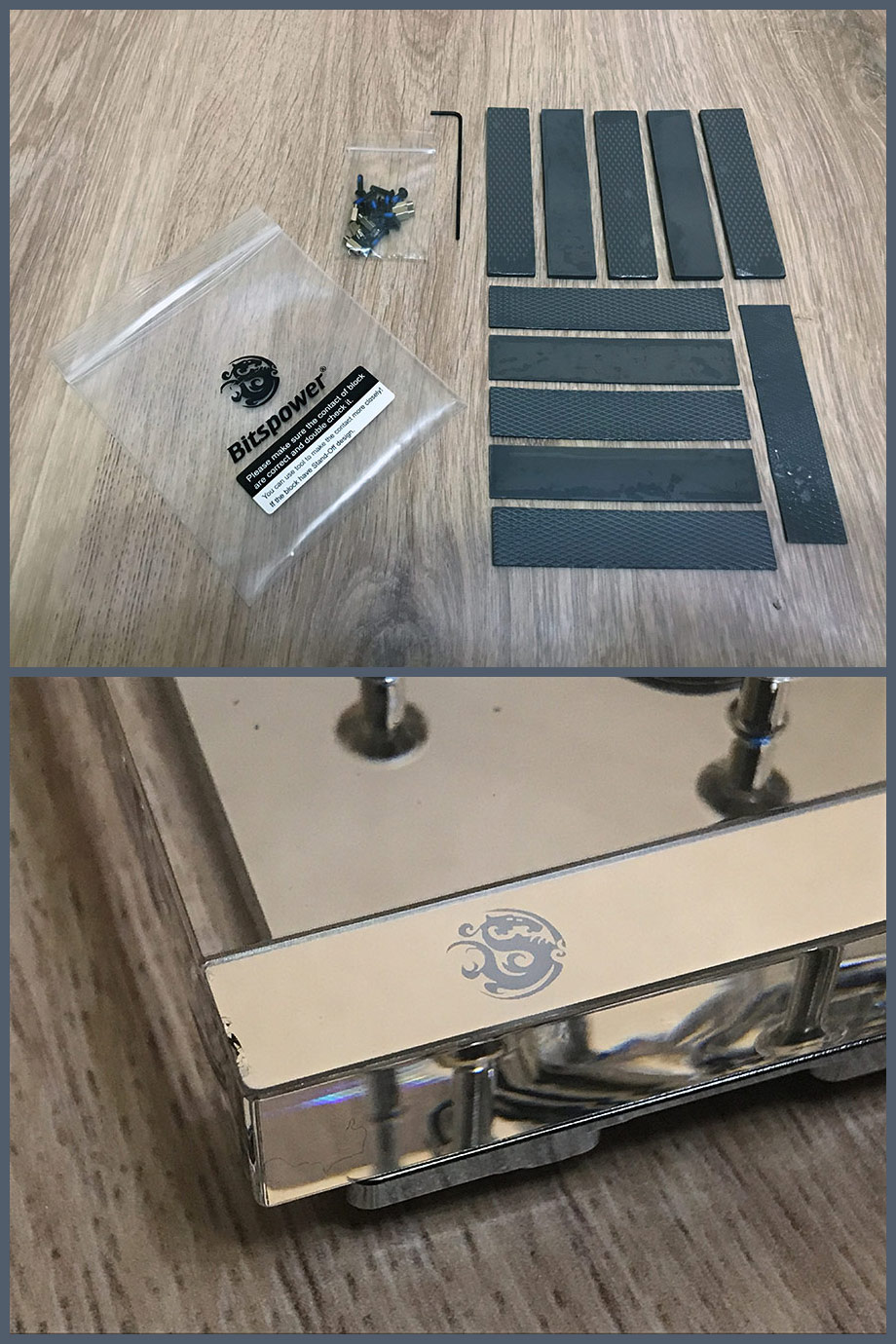 О косяках: первое, что сразу бросилось в глаза - это небольшая "помятость" рядом с мини-лого (см. последнее фото), второе - это полное отсутствие каких-либо выпуклостей на бэке, для этого предусмотрены толстые прокладки (возможно лучше будет использовать родной, проверим) и, третье - это немного "побитая" одна из прокладок (единственная в комплекте на 0.5 мм, но есть запасные от Gelid).