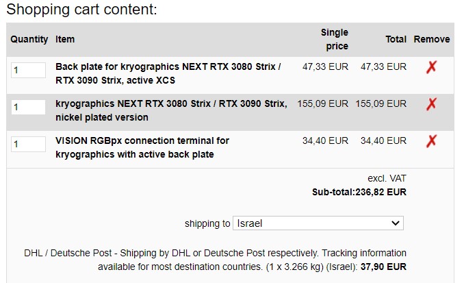 ALSTER там надо бэк брать, а его нету в наличии, потом докупать и опять за доставку платить цену бэка такая себе затея, я дождусь пожалуй битсов, там все в комплекте без этих евро заморочек к стати вот и он 209.80 usd включая бэк без доставки #77 ROG-STRIX-RTX3080-10G-GAMING ROG-STRIX-RTX3080-O10G-GAMING ROG-STRIX-RTX3090-24G-GAMING ROG-STRIX-RTX3090-O24G-GAMING прям универсальник 1.5 мм больше в высоту чем 3080, это стоило задержки а если серьезно они вроде по картинкам немного сместили медную часть от тех конденсаторов которые возле i\0