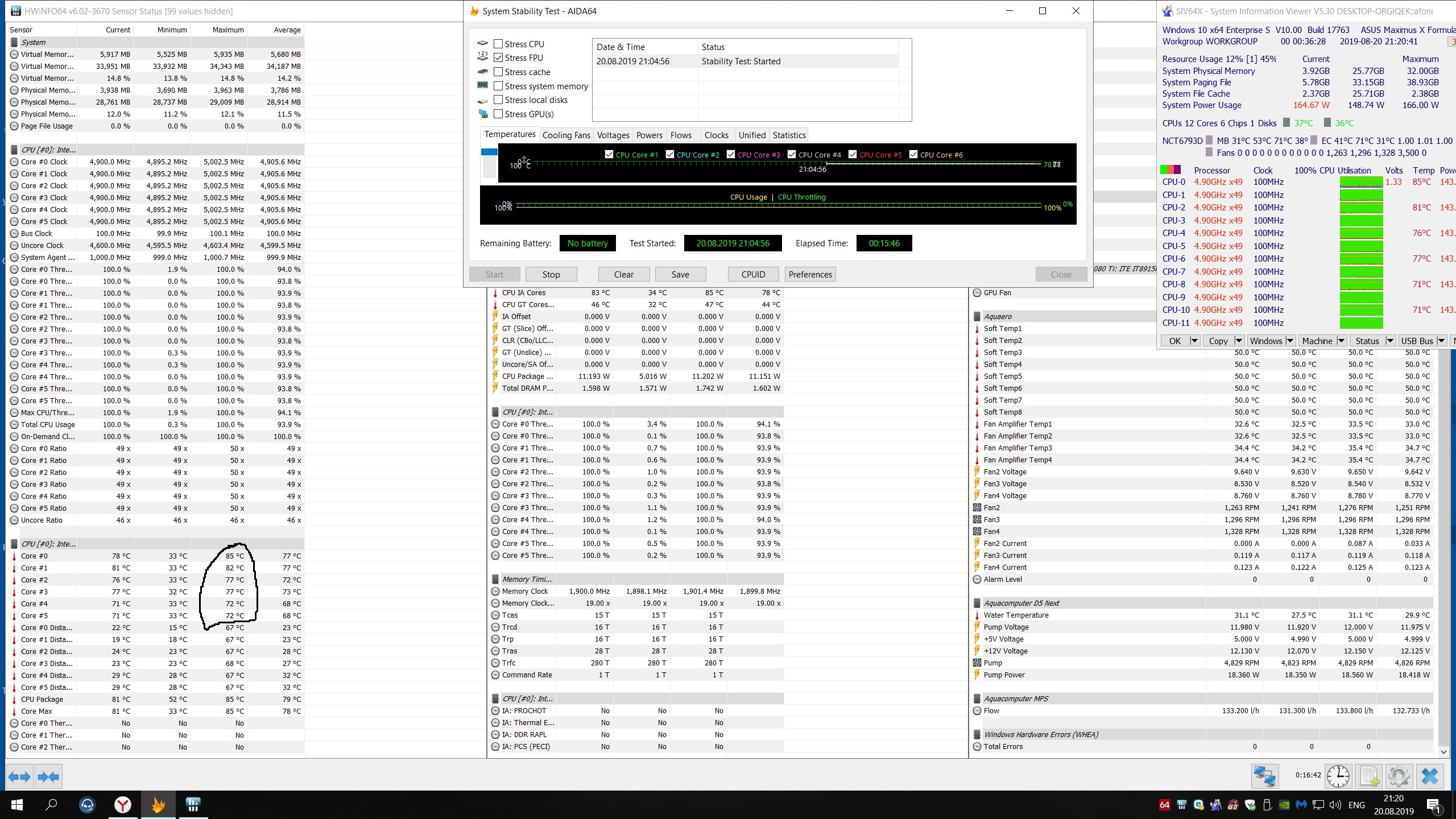 это хуже чем счас на порядок..У меня тогда было хуже.Да и это все синтетика.В играх у меня сейчам все намного лучше.Я приводил скрин из танков на 5100 мгц в сравнение со старым контуром на той же локе. У тебя 82 в максе на скрине и нет среднего значение average(среднего значения на ядро поэтому тут нечего сравнивать).Дельта 2.2 градуса судя по water in.Максималка ниже на 3 градуса на частоте 4600 достижение?)))и то у меня был один скачек только на 84 это в другом датчике показало 85.а теперь все тоже самое на частоте 5ггц с авх 1 сделай.Если я поставлю 4600 и память 2400 картина будет совершенно иная.Даже у отмороженного троля на 3770к и то 5000 гц.опустим память на ddr3 все равно больше не выжмешь.Но проц то почему 4600?и такой конский вольтаж?