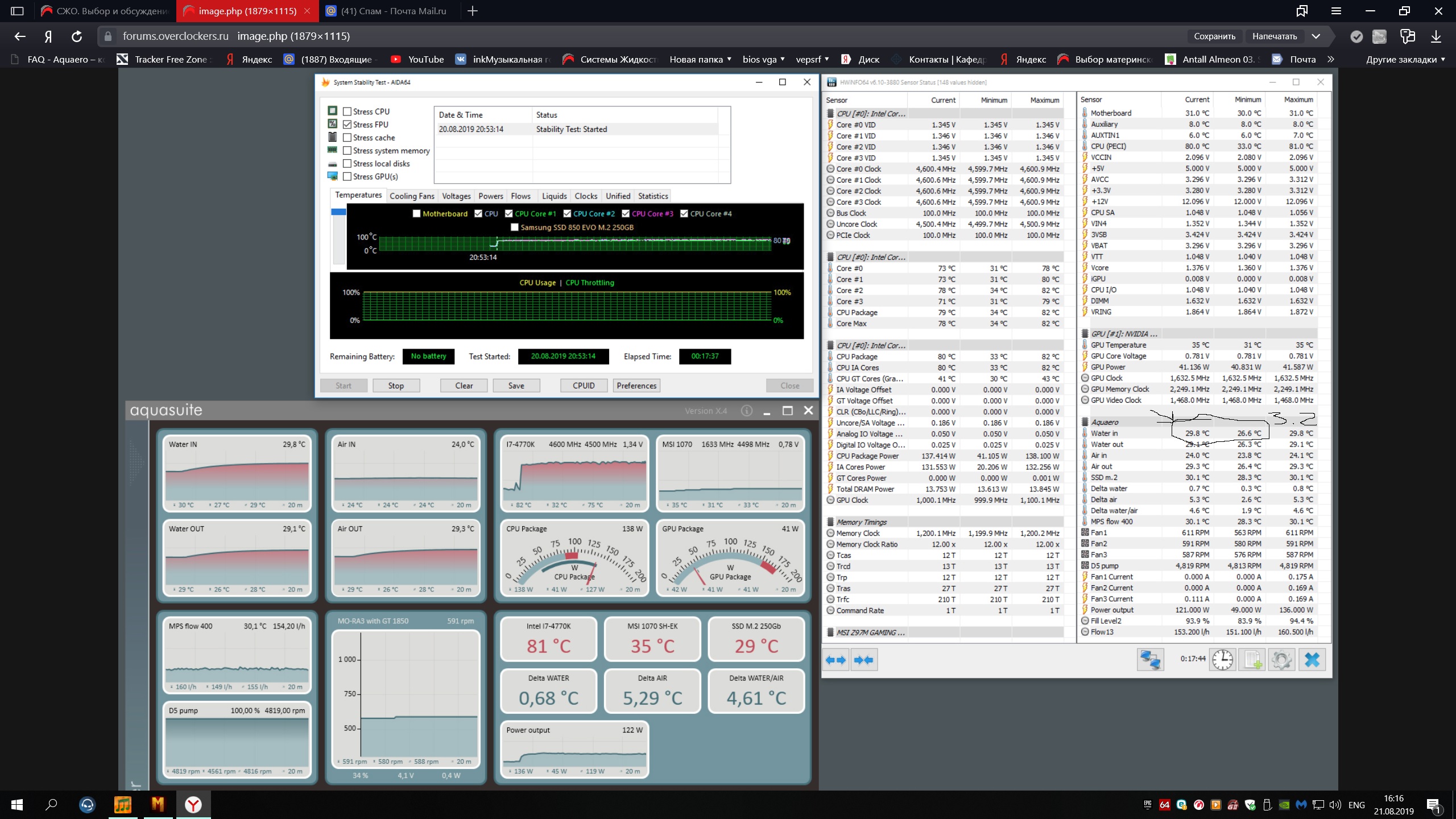 Добавлено спустя 5 минут 39 секунд: сейчас на втором скрине глянул и в другом тести ваш мпс дублирует датчик температуры ssd m2 .Так что температуру вашей жидкости будет я думаю лучше под двум термопарам на вход и выход измерять