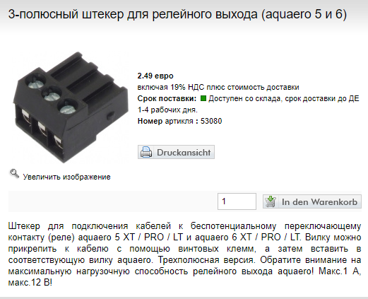 w0022799 На акваеро присутствует специальный 3х контактный коннектор,но другой,не такой как на переходнике,его нужно отрезать и подсоединить другой штекет(так говорит аква)