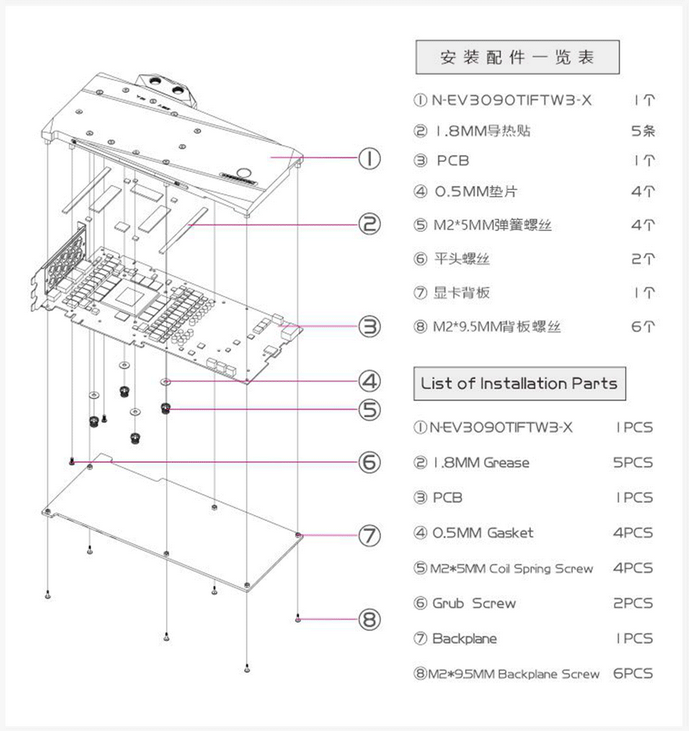 В общем заказ блок Bykski N-EV3090TIFTW3-X судя по описанию там идут прокладки 1.8м