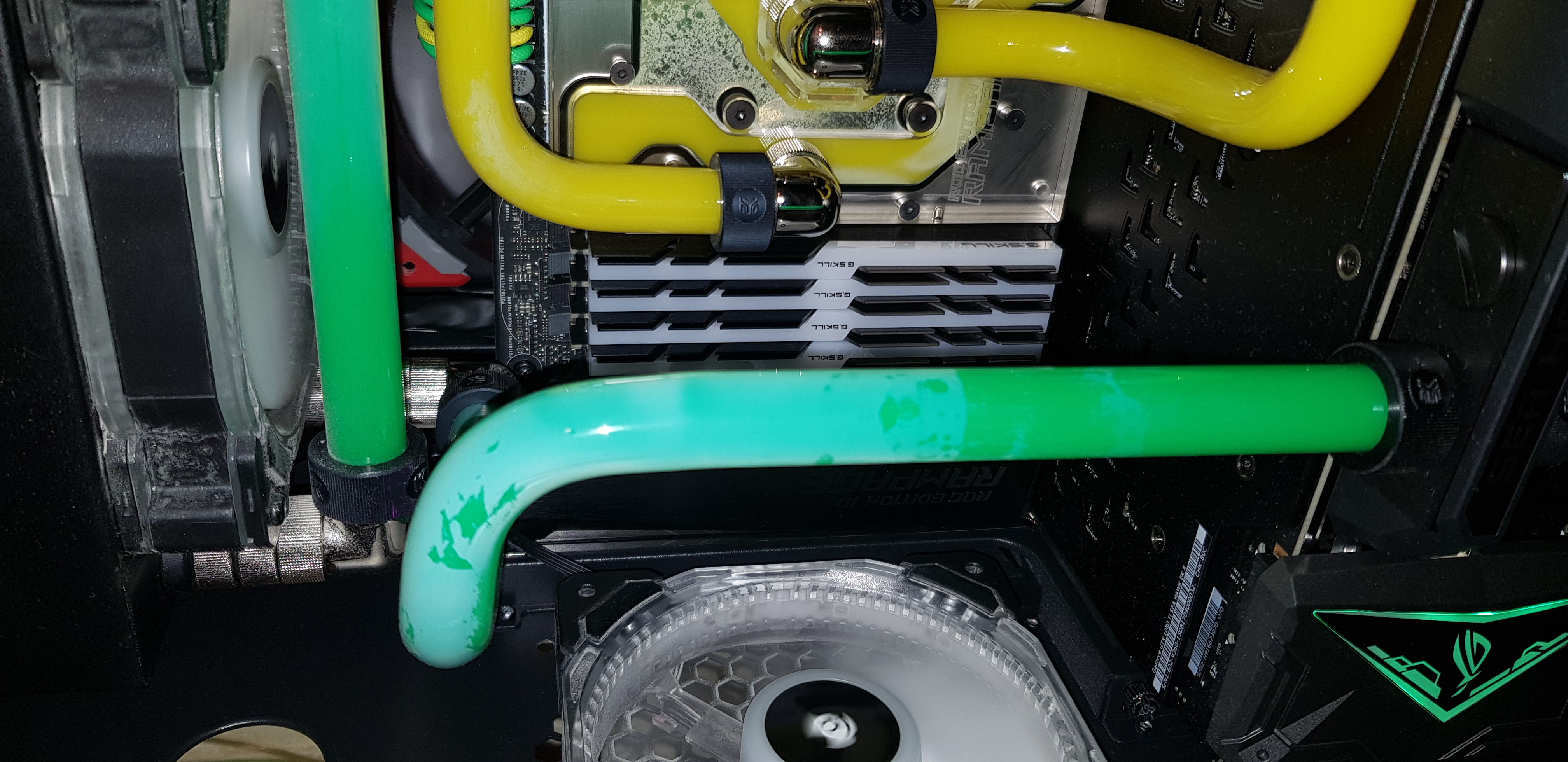 Неа. На картах к стати тоже самое. Вот такие "офигенные" водоблоки делает у нас ЕК. Причём они такие все. Обычная жижа не видна, а вот термал сразу просочился. Причём 1080ti от MSI, sea havk EK, которые сразу идут с водоблоками от ЕК.