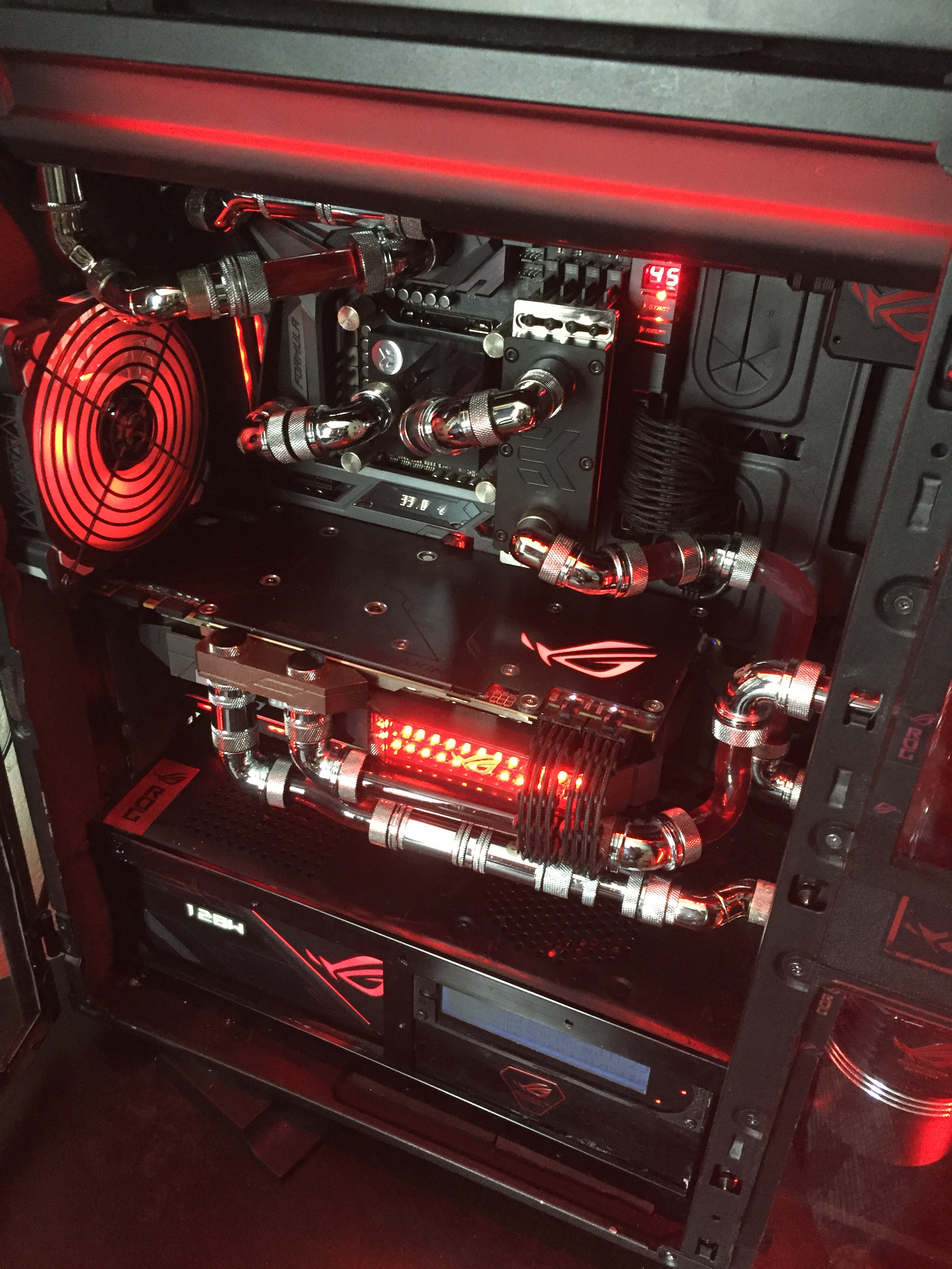 Была идея поставить на Quad из 1080 Ti воду. С квадом не сложилось (Паскали его не любят). Сделал всё таки воду на SLI. От делать нечего. Компоненты брал от Alphfacool. Водоблоки на ВК (ИМХО) самые лучшие. Дизайн и функционал. (Цена тоже) Во первых рёбра, во вторых бэкплата в комплекте (греется в нагрузке бенчи до 70 градусов) Вентили на минимуме, в играх или бенчах больше 40 Ц не поднимается. Карты 2063 (+175) держат спокойно, до этого как 65Ц набирали понятно откатывались в низ частоты. И это самый большой походу плюс. Уже предвижу гемор с переходом на Вольты. Если бы ещё и Quad, всё бы выглядело улётно да 50 Tflops не помешало бы. А так... Тихо и ... #77