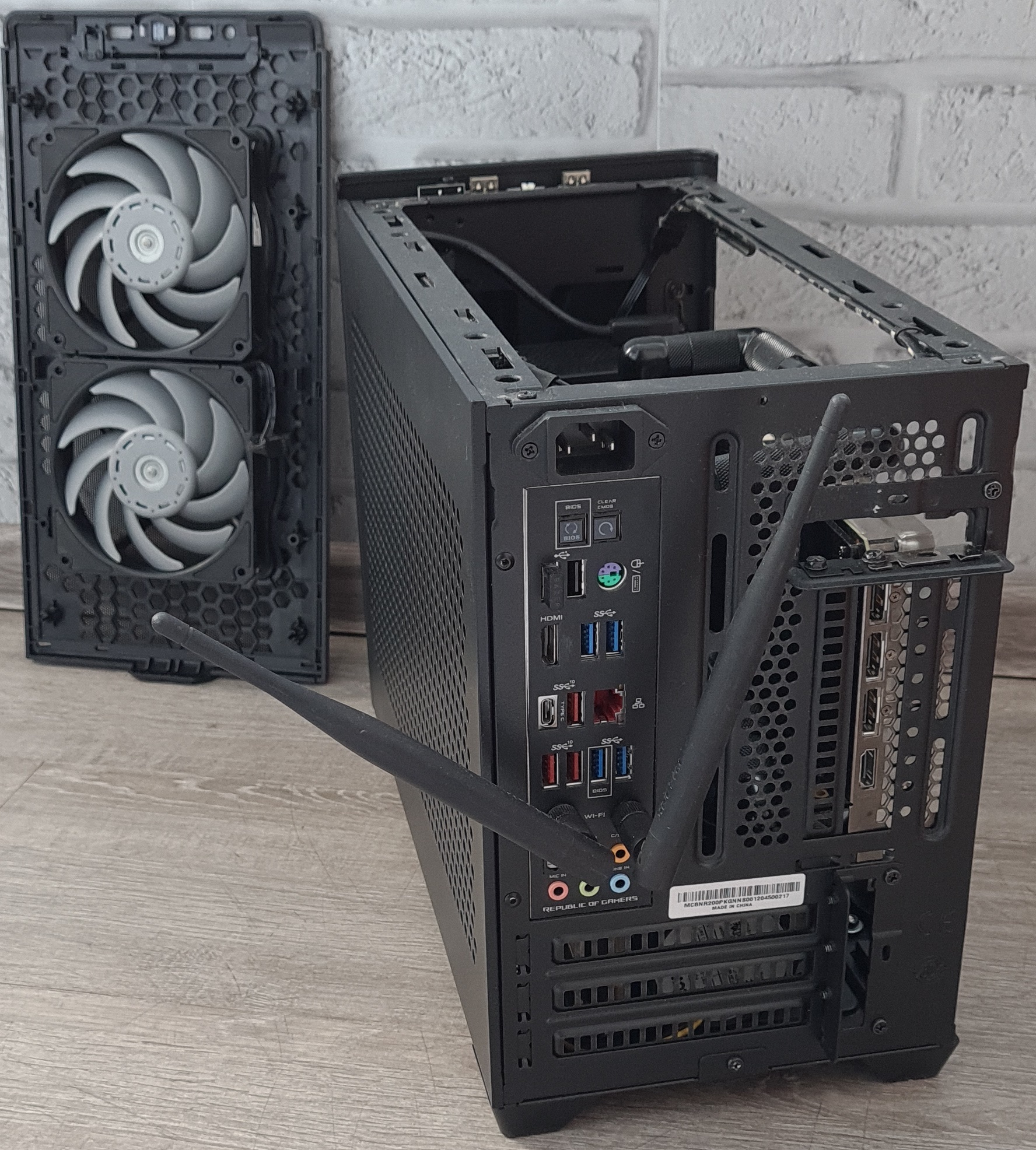 Цель была - осуществить хороший воздушный поток в компактном корпусе(снизу вверх), у которого было бы минимум препядствий. Несколько переделок и вот результат ( меньше шума, лучше продуваемость, значительно эффективней охлаждение):