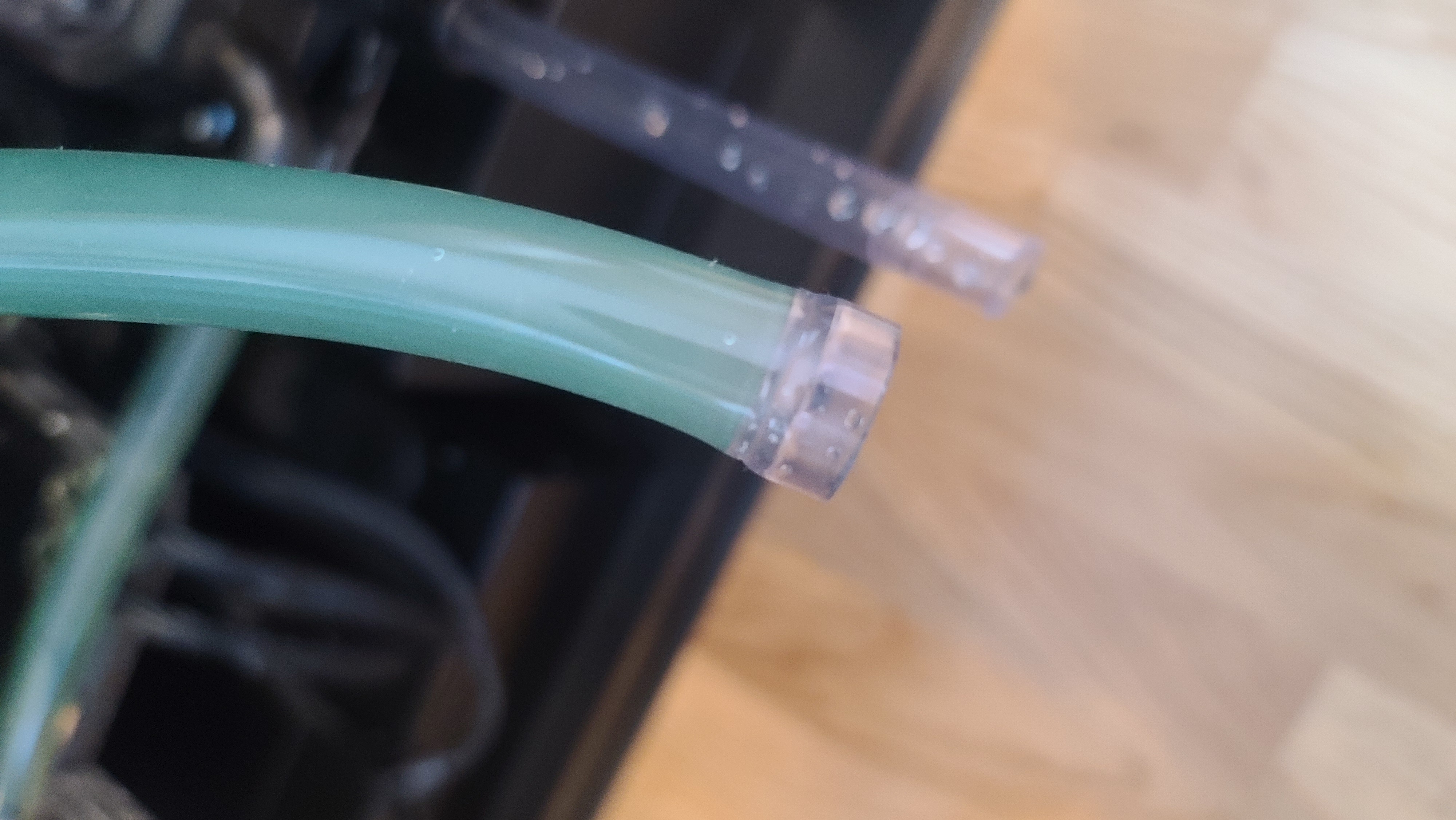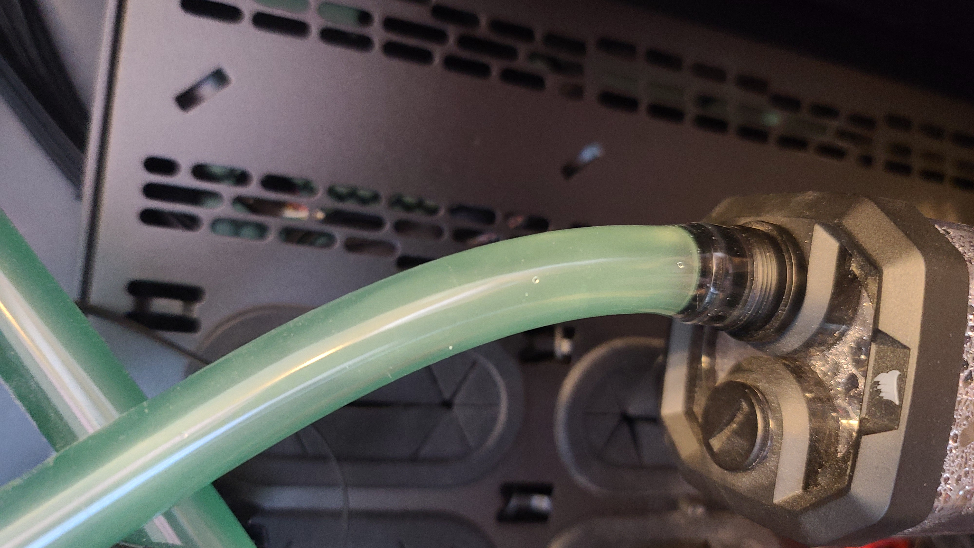 Нужно разобрать контур. И раньше замечал, что трубки позеленели, но при разборе явно. Трубки ЕК, жижа Corsair XL5. Что это может быть? Не страшно? И ещё, повторно трубки сажать можно на фитинги или новую трубу нужно? Шланги нормальные, гнутся, не задубели спустя 2 месяца.На фото так же цвет новой трубки на сливном кране для сравнения. Что скажете?