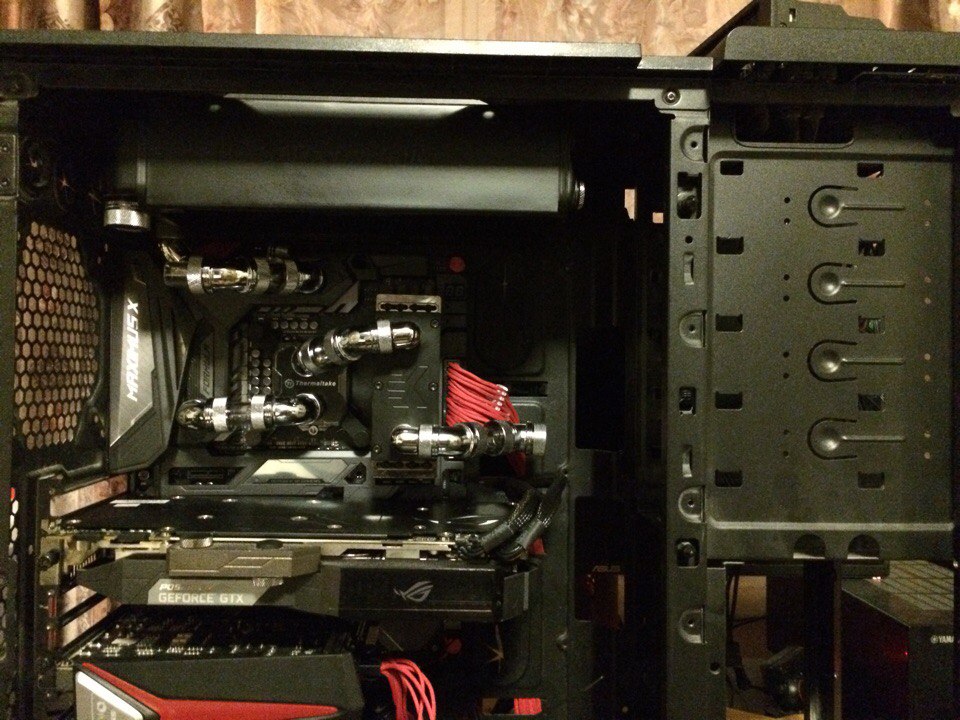 добрый день вот мозгую систему на трубках новичок в этом деле, кто подскажет какие советы?сейчас на стадии ожидании второй помпы и радика 360 мм,а также жгута для трубок и фитингов с креплениями для помп на радиатор , думаю сделать выпил спереди друмелем.Хотел спросить как лучше на видяху забацать контур?где выход и вход разместить(там 4 отверстия) ?И еще чето впадлу все разбирать и высверливать корпус друмелем,если аккуратно закрыть отсек с матерью ничего не будет ?))
