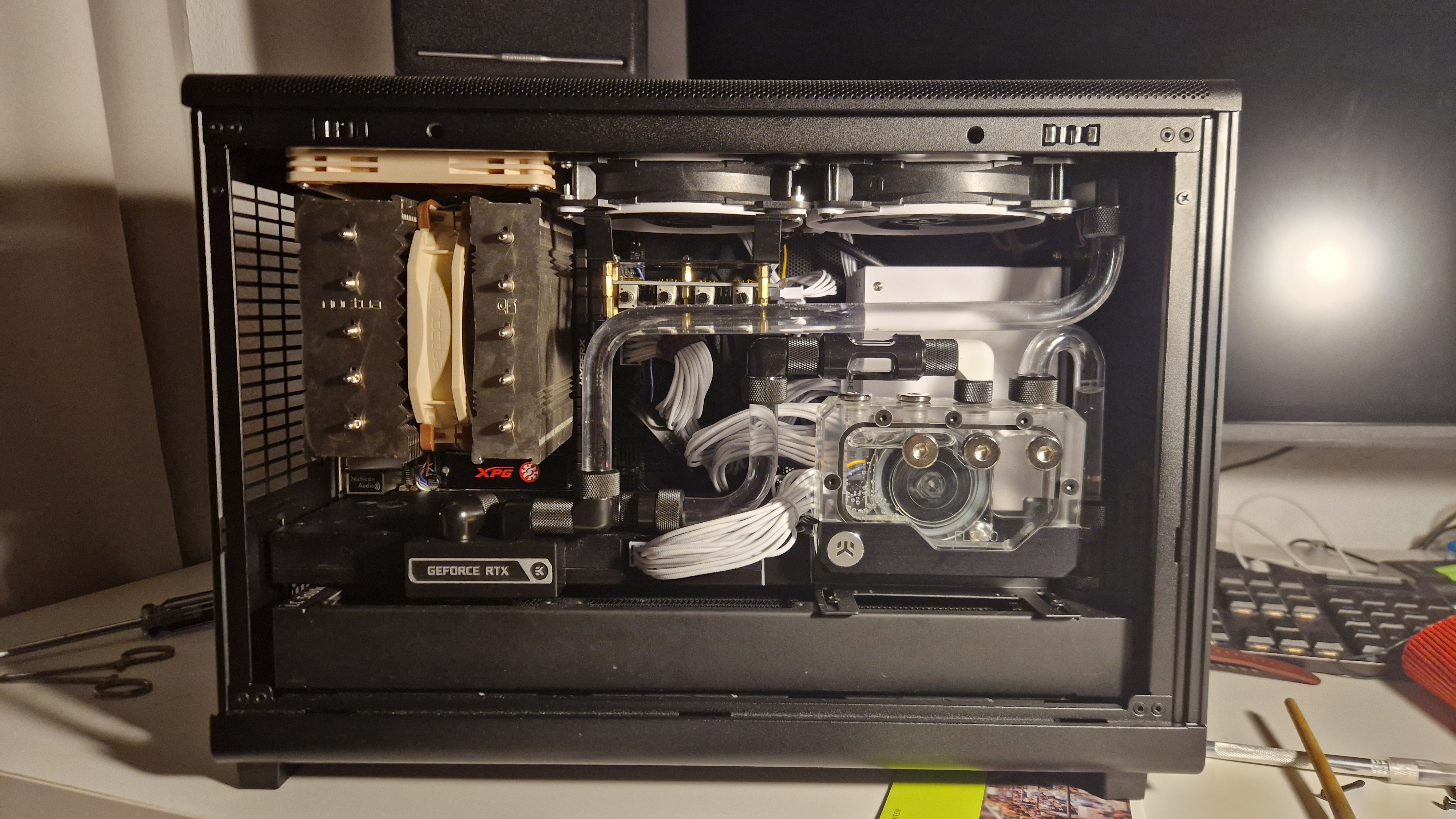 Вся комплектуха (включая элементы СВО) по большей части 5-10 летней давности (за исключением видяхи с предустановленным фуллом от Alphacool и M.2 SSD)