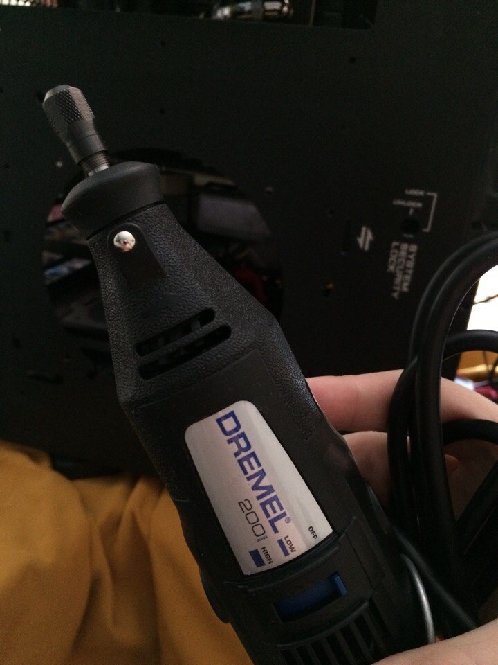 випил под радик готов благо вышел в коридор ,,вонища от дремеля(от резака как от болгарки запах) жосткая и опилок просто тьма ....сейчас вообще не представляю, каким бы образом я бы это все делал в мамкой в корпусе...мне даже провода от юсб мешали родные не сьемные!!!!!установил пылевые фильтры в пару мест перекур устроил однако!)завтра за плекигласом схожу продолжу однако!