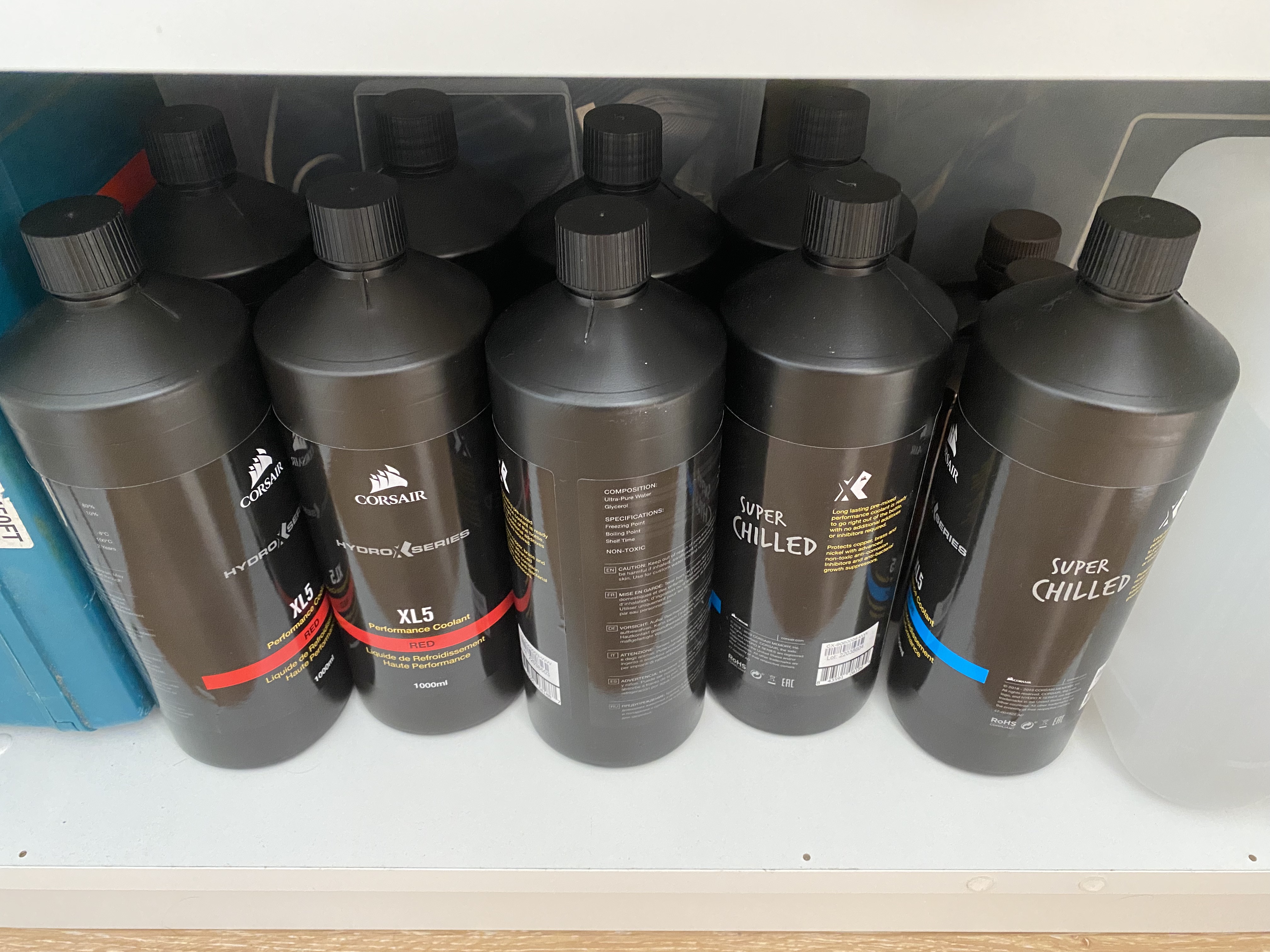 Nap Смотрю ты затарился всеми цветами радуги). У меня залит год как Corsair XL5 clear. Встал вопрос доливки. Вот думаю цветную долить корсар, так как прозрачной нет уже нигде. Или Mayhems прозрачную взять, раз это одно и тоже, хотя это не точно, но температура замерзания у них одинакова - 8. Или тупо долить дистилята и дожить до конца года(нужно около 2х литров долить к 5 литрам corsair XL5). Так же цветную не хотел никогда, так как боялся, что покрасятся водоблоки и резервуар. Вот ломаю голову,сто лучше. Но так, как год уже работает, то новую доливать есть ли смысл.